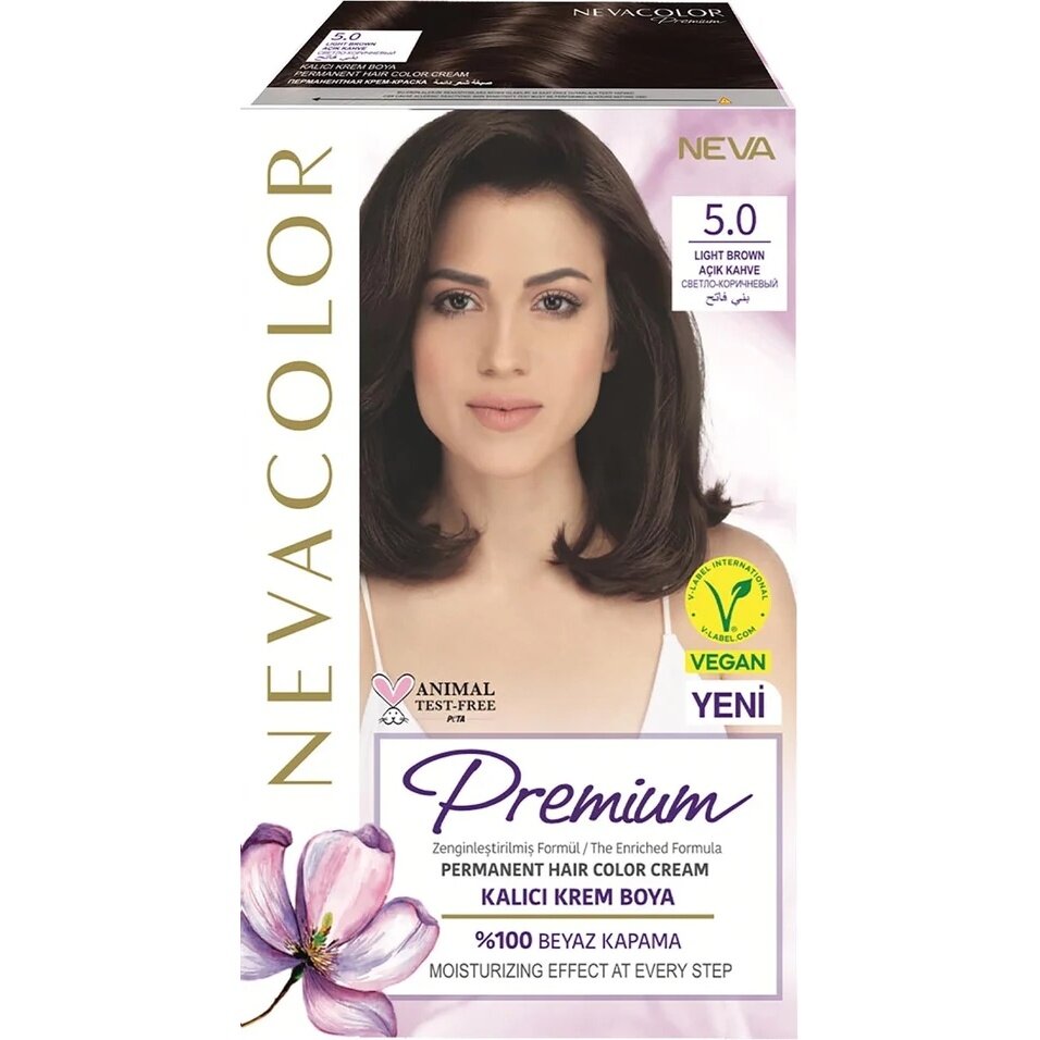 Купить Крем-краска для волос Neva "Premium", стойкая, тон 5.0, Light Brown
