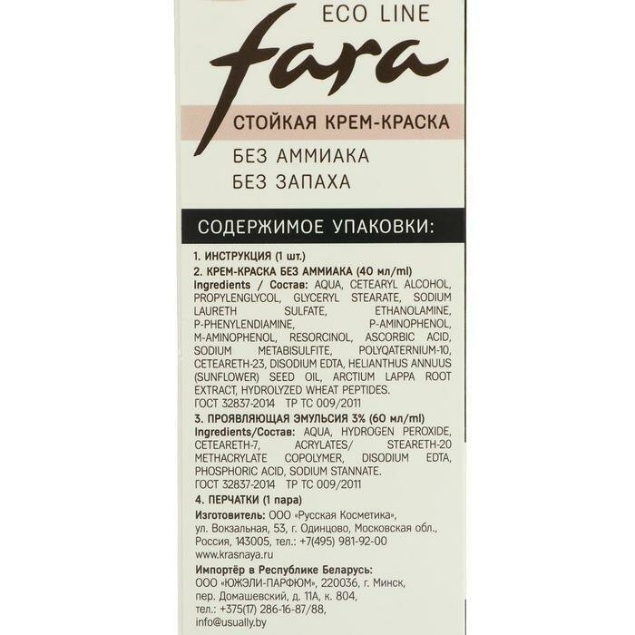 Краска для волос натуральный русый FARA Eco Line тон 7.0 стойкая крем-краска для волос