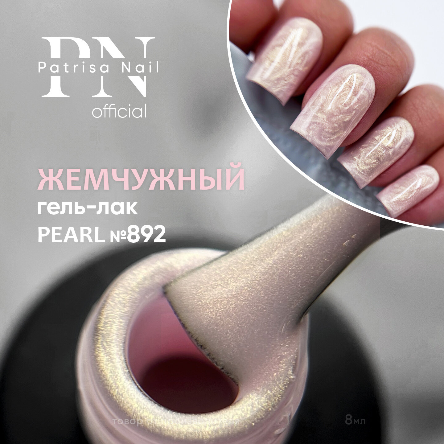 Купить Гель-лак для ногтей Patrisa Nail жемчужный "Pearl" № 892, 8 мл