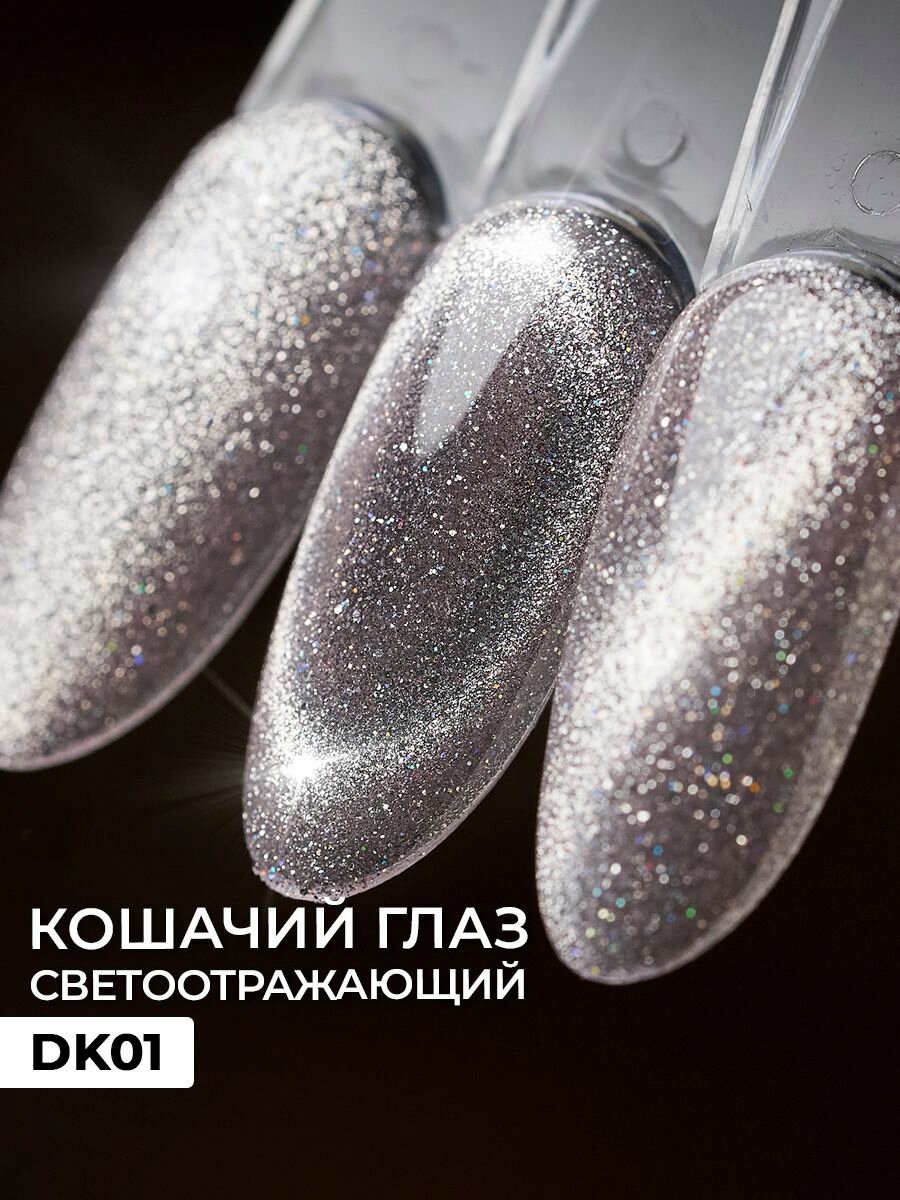 Светоотражающий гель лак для ногтей кошачий глаз от Pinkberry, серебристый, 11,5мл
