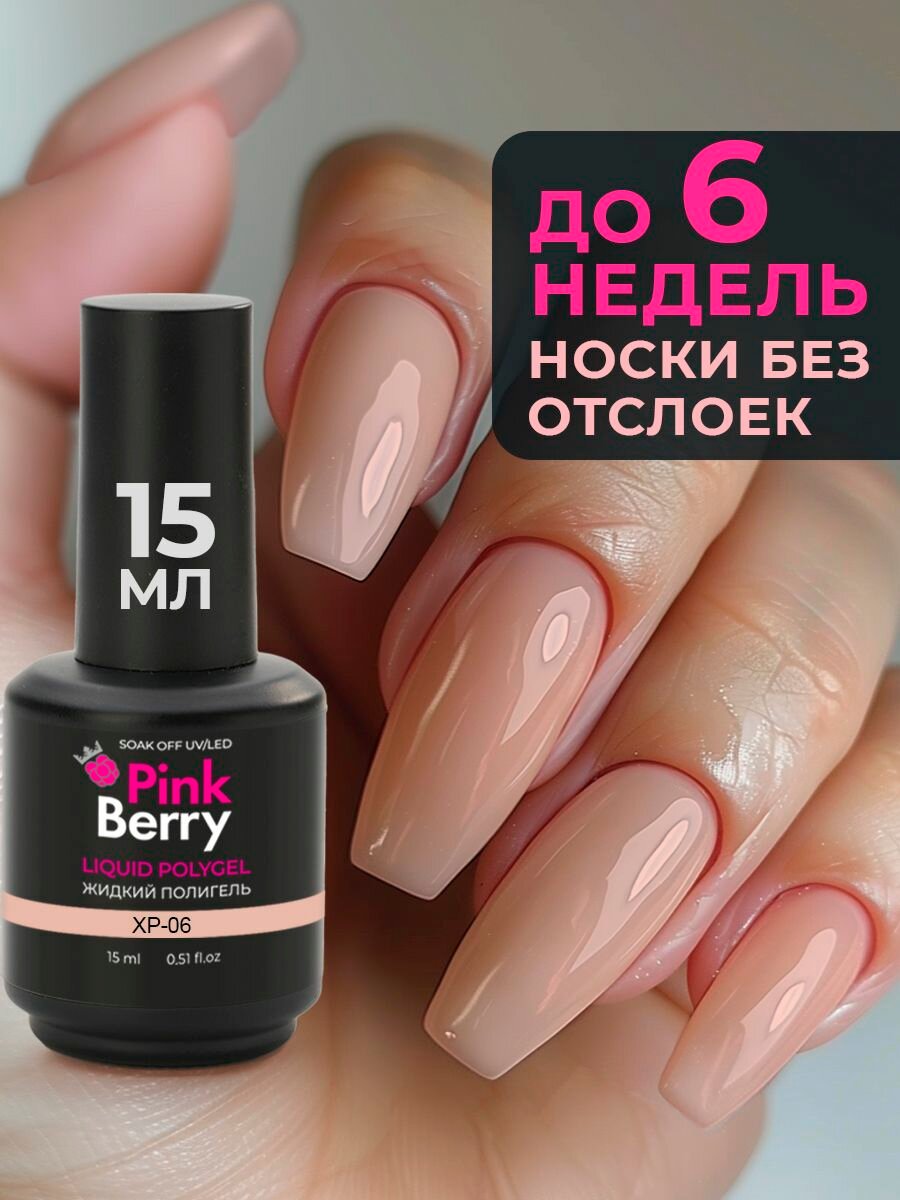 Жидкий полигель для укрепления и наращивания ногтей от Pinkberry бежевый лайт, натуральный, 15мл