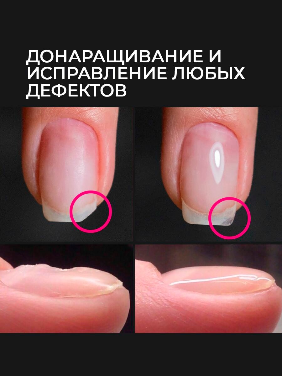 | Способ применения | донаращивание;укрепление;ремонт;исправление любых дефектов;не печет;free hema;free tpo;высокая скорость самовыравнивания;не пузырится при нанесении;жидкий полигель |