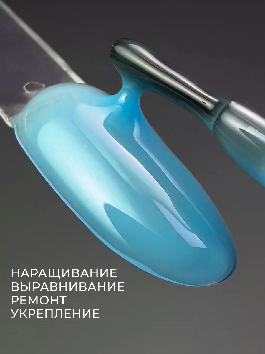 Жидкий полигель для укрепления и наращивания ногтей шиммер голубой перламутровый, 15 мл