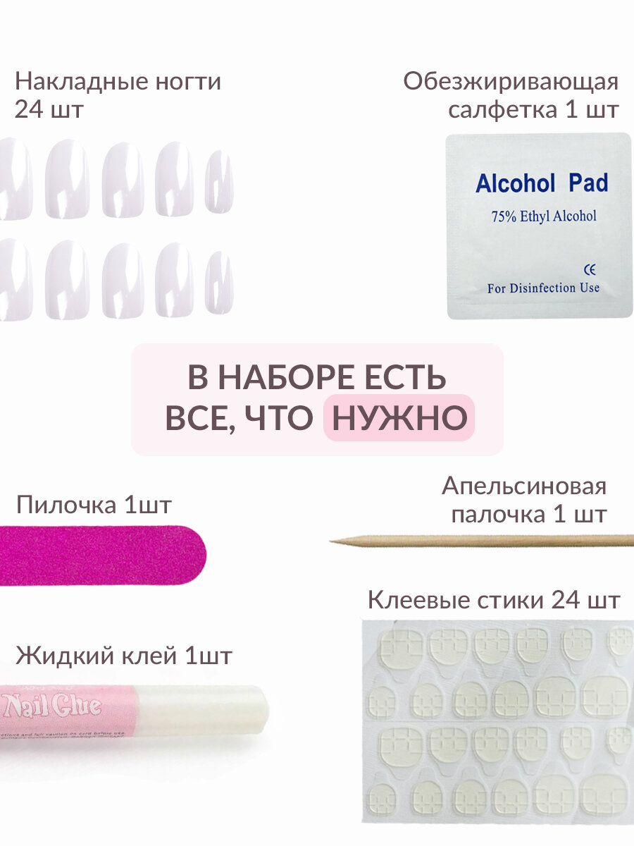 Накладные ногти с дизайном молочные белые
