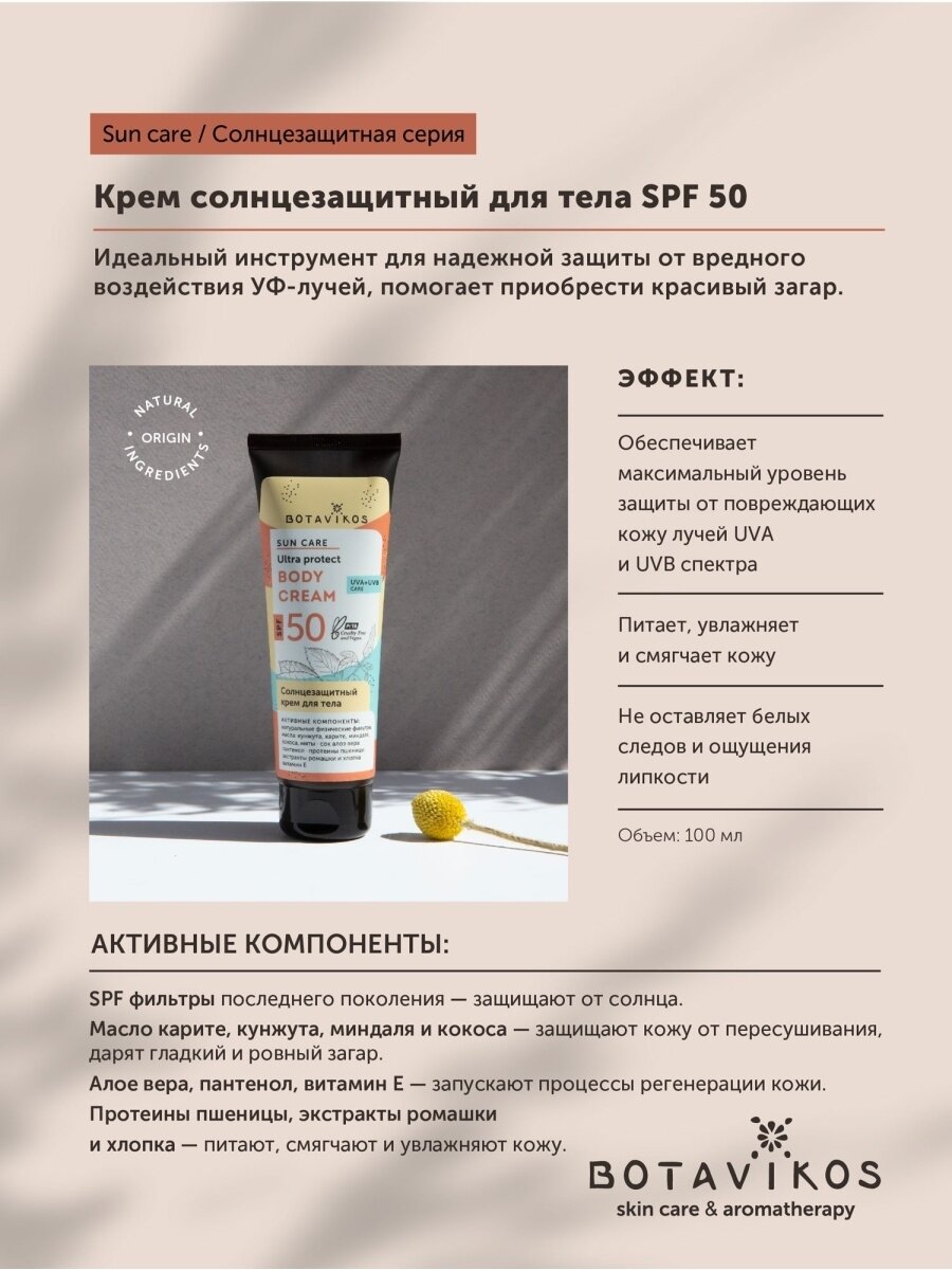 Солнцезащитный крем для тела Botavikos SPF 50, 100 мл интересное: