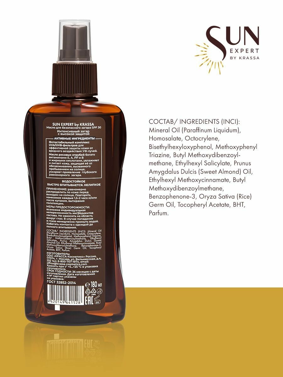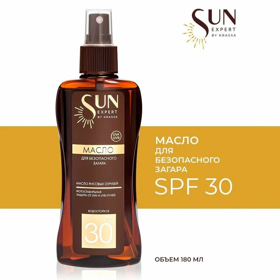 Купить Масло для загара активатор SPF 30 SUN EXPERT by KRASSA, 180 мл с маслом рисовых отрубей для тела солнцезащитное