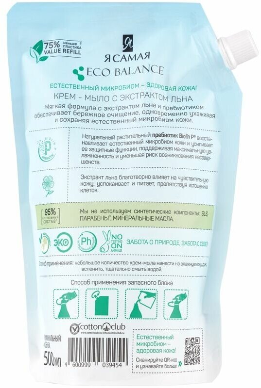 Я самая Крем-мыло ECO BALANCE с экстрактом льна (дой-пак) 500 мл интересное: