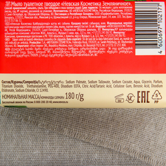 Мыло туалетное Невская Косметика Земляничное, 180 г