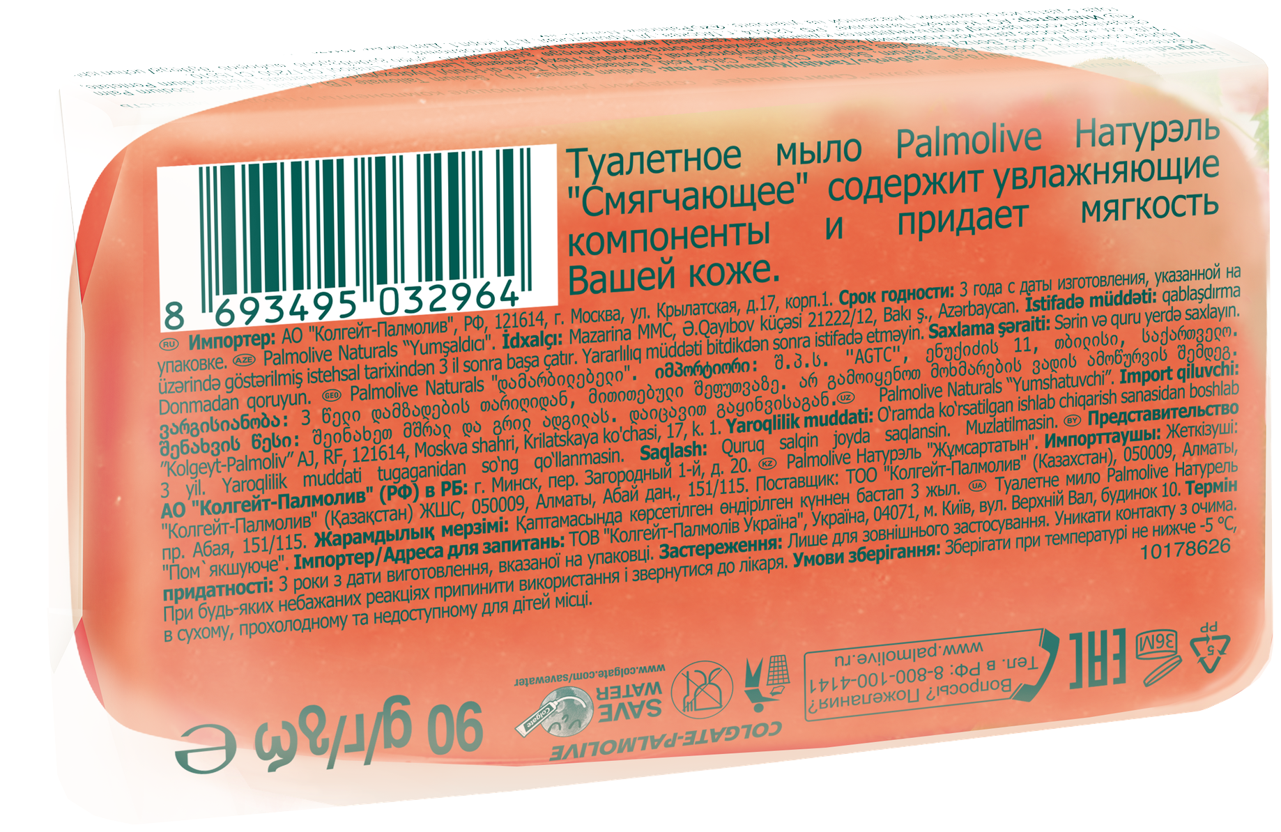 | Состав | Sodium Palmate (A), Sodium Tallowate (B), Aqua, Glycerin, Sodium Oleate,Coconut Acid, Parfum, Sodium Chlorid, Sorbitol, Citric Acid, Pentasodium Pentetate, Pentaerithrityl Tetra-d-t-butyl, Hydroxyhydrocinnamate, Alpha-Isomethyl lonone, Benzyl Salicylate, Butylphenyl Methylpropional, Citronellol, Hexyl Cinnamal, Limonene, Linalool,CI 17200, CI 15510 |
