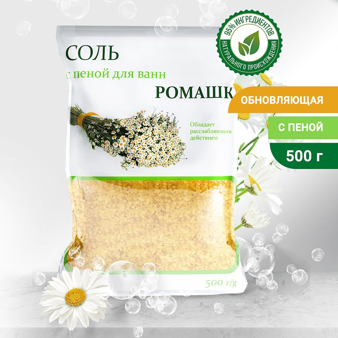 Соль Dream Nature с пеной для ванн Ромашка 500 г, 1799839 интересное: