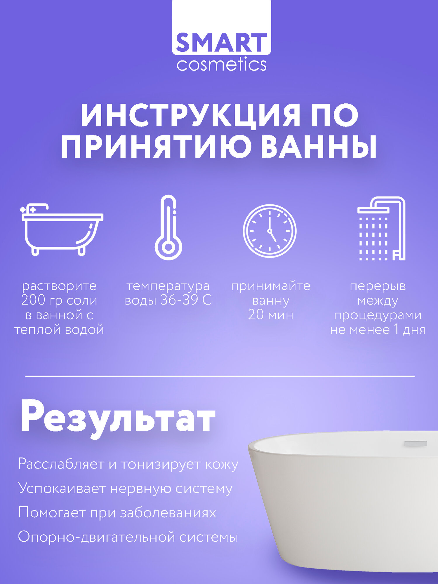 Бишофит/Магниевая соль для ванн, Smart Cosmetics, 1 кг/Соль антистресс/Омолаживающий эффект