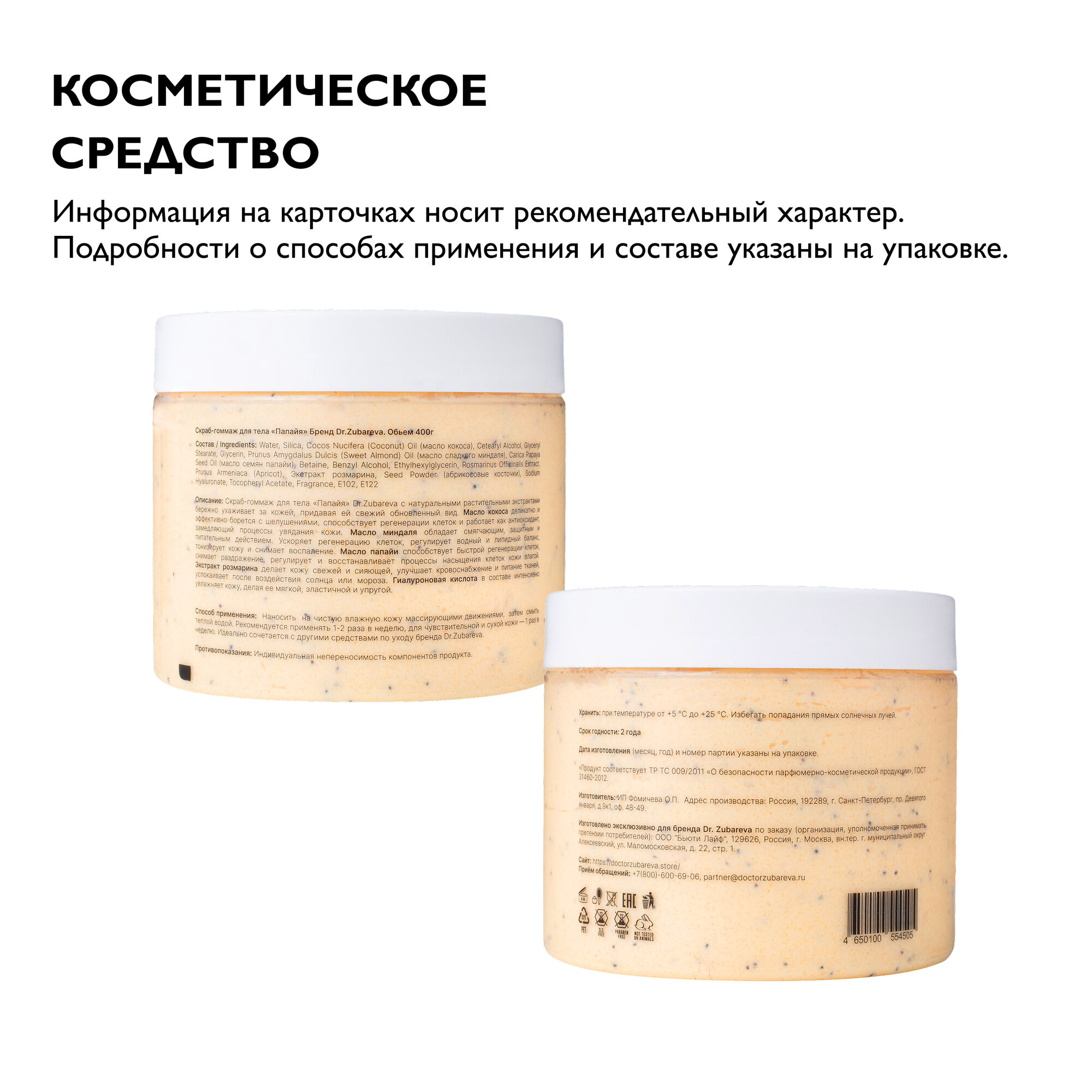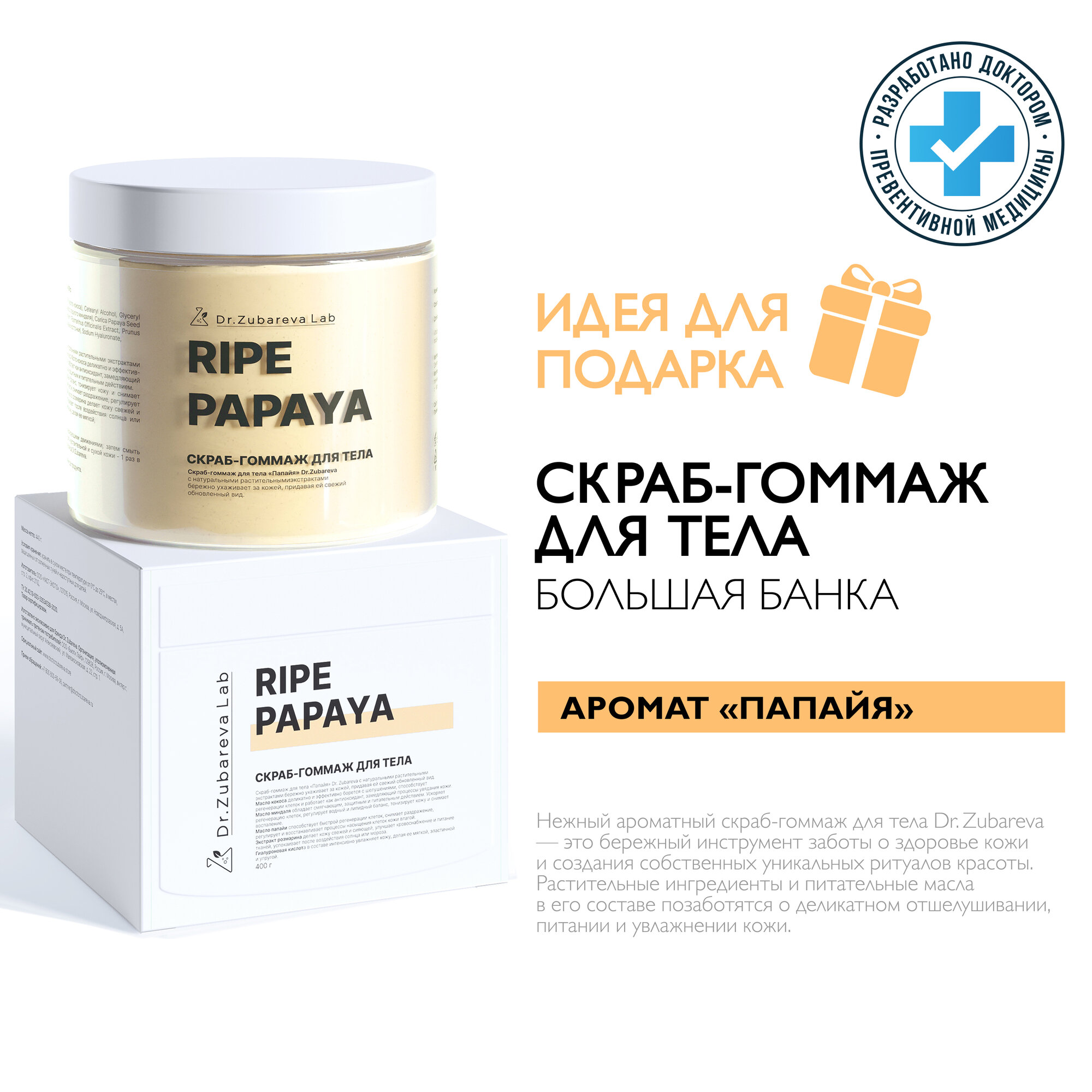 Dr. Zubareva | Зубарева Скраб для тела с натуральными экстрактами / папайя / 400 гр / пилинг
