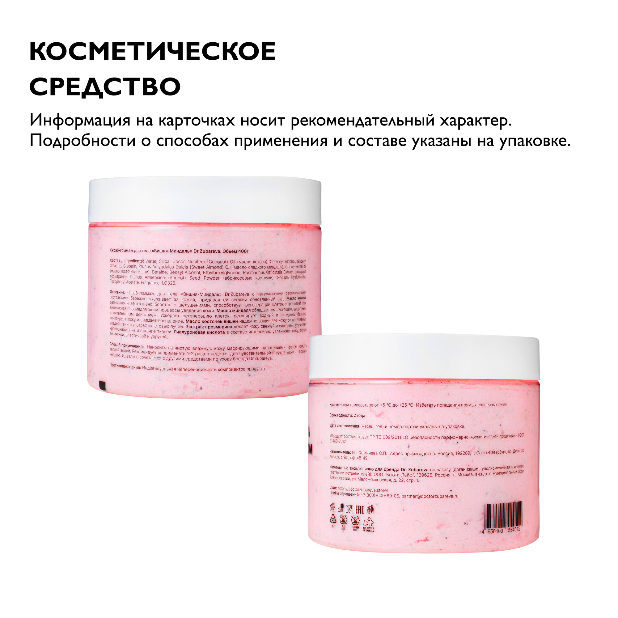 СохранитьСкраб для тела Dr. Zubareva | Зубарева с натуральными экстрактами / вишня- миндаль / 400 гр интересное: