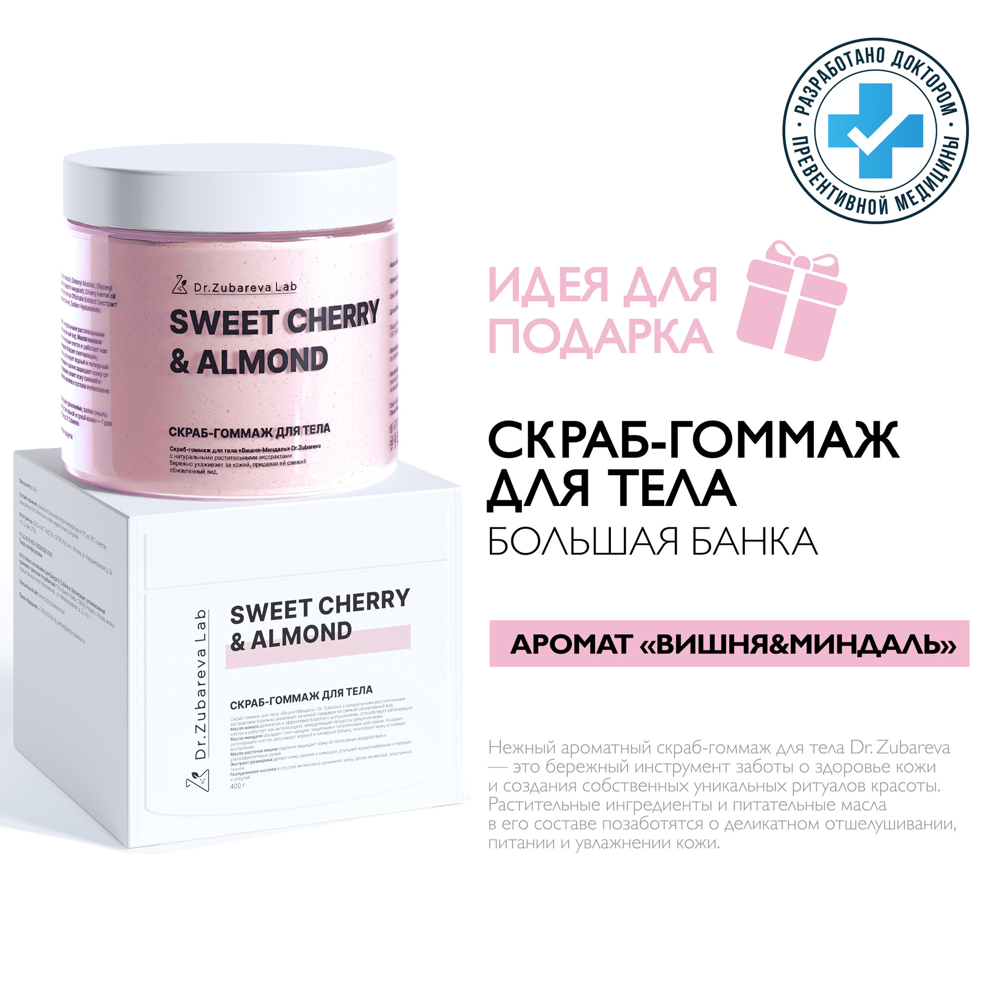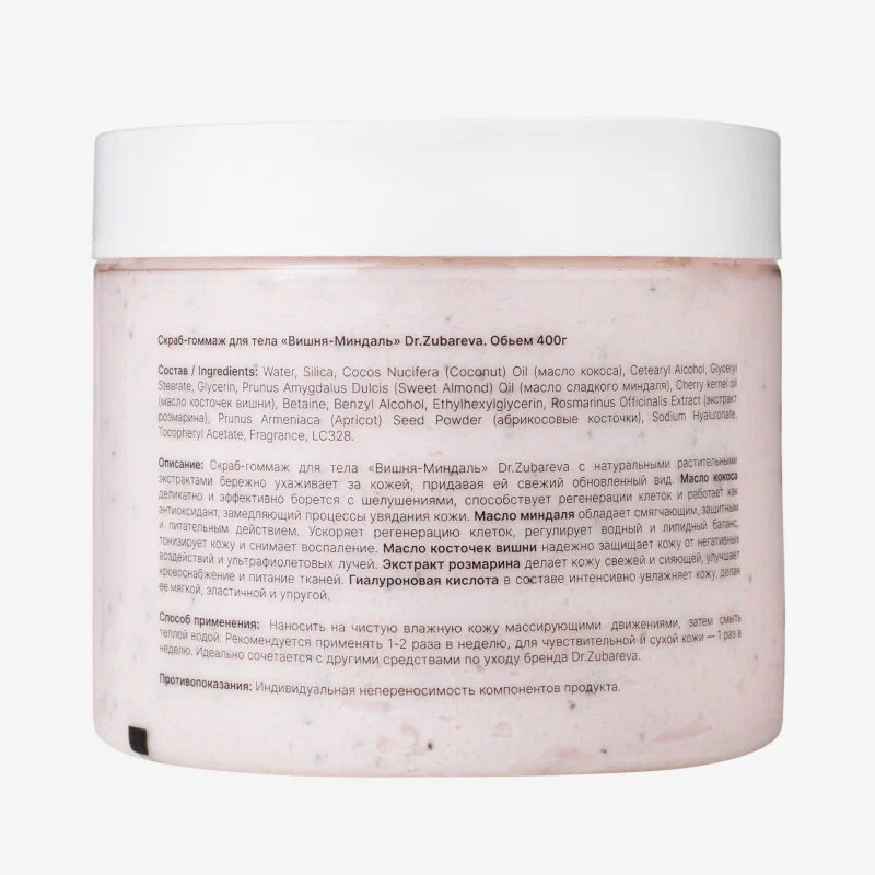 Купить Скраб для тела Dr. Zubareva | Зубарева с натуральными экстрактами / вишня- миндаль / 400 гр