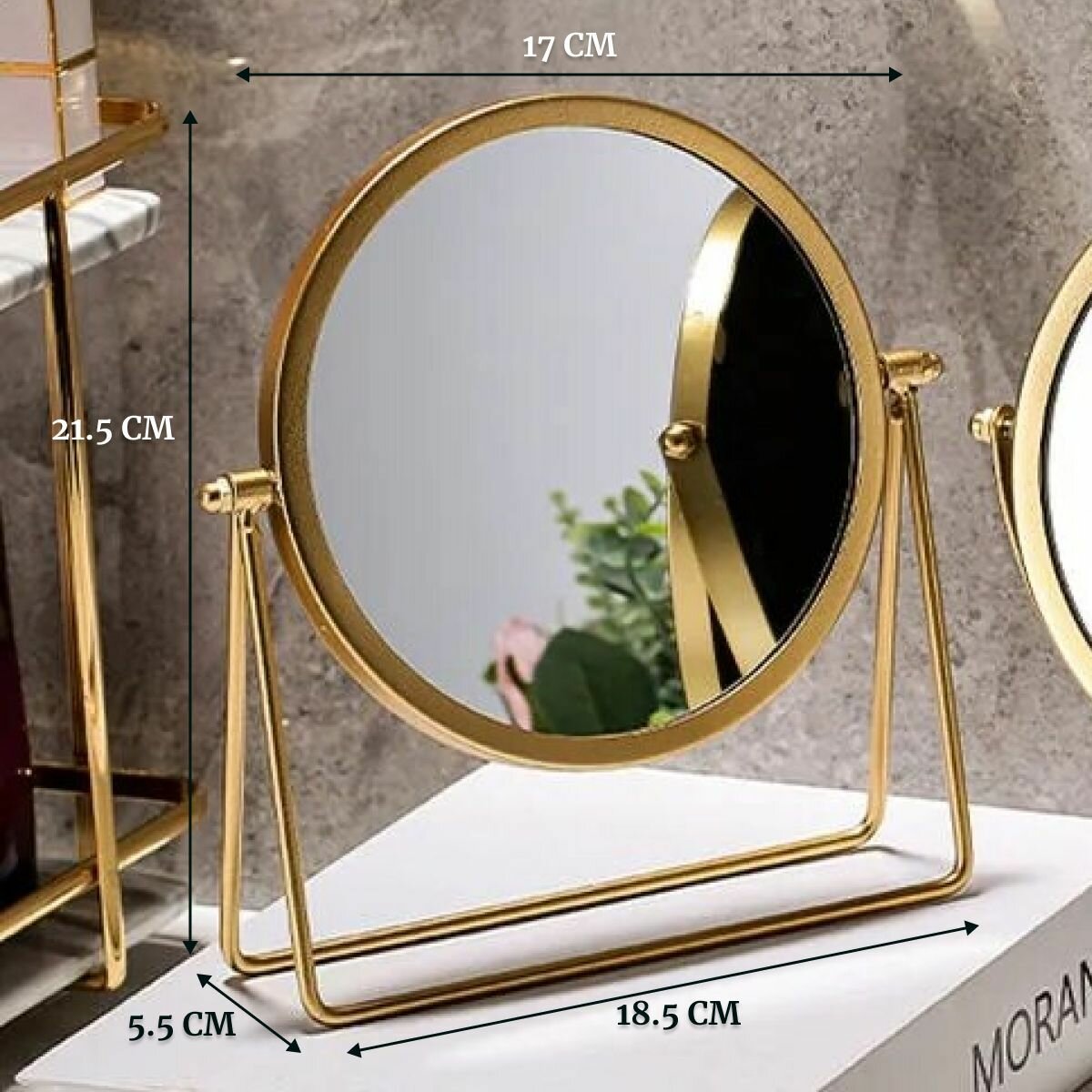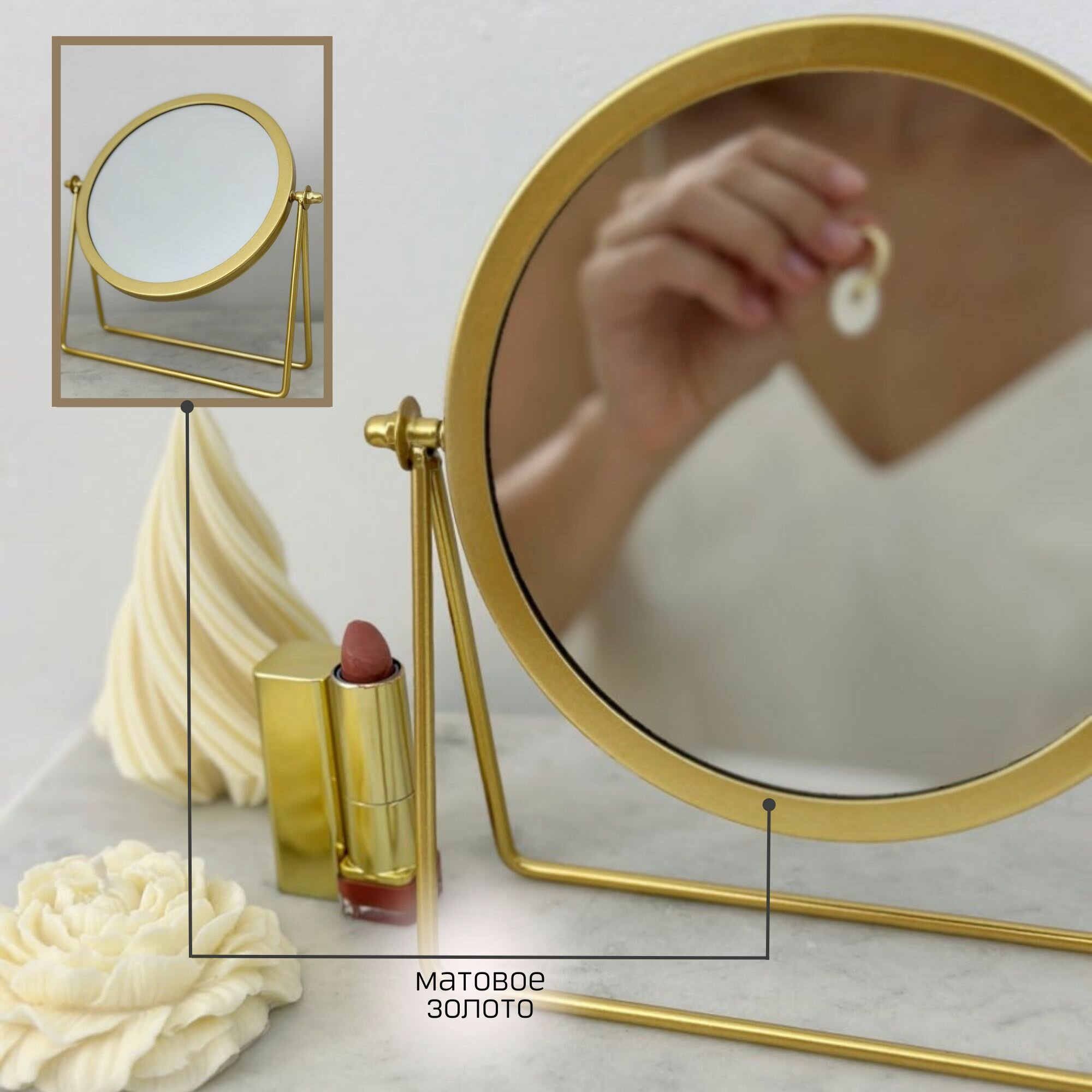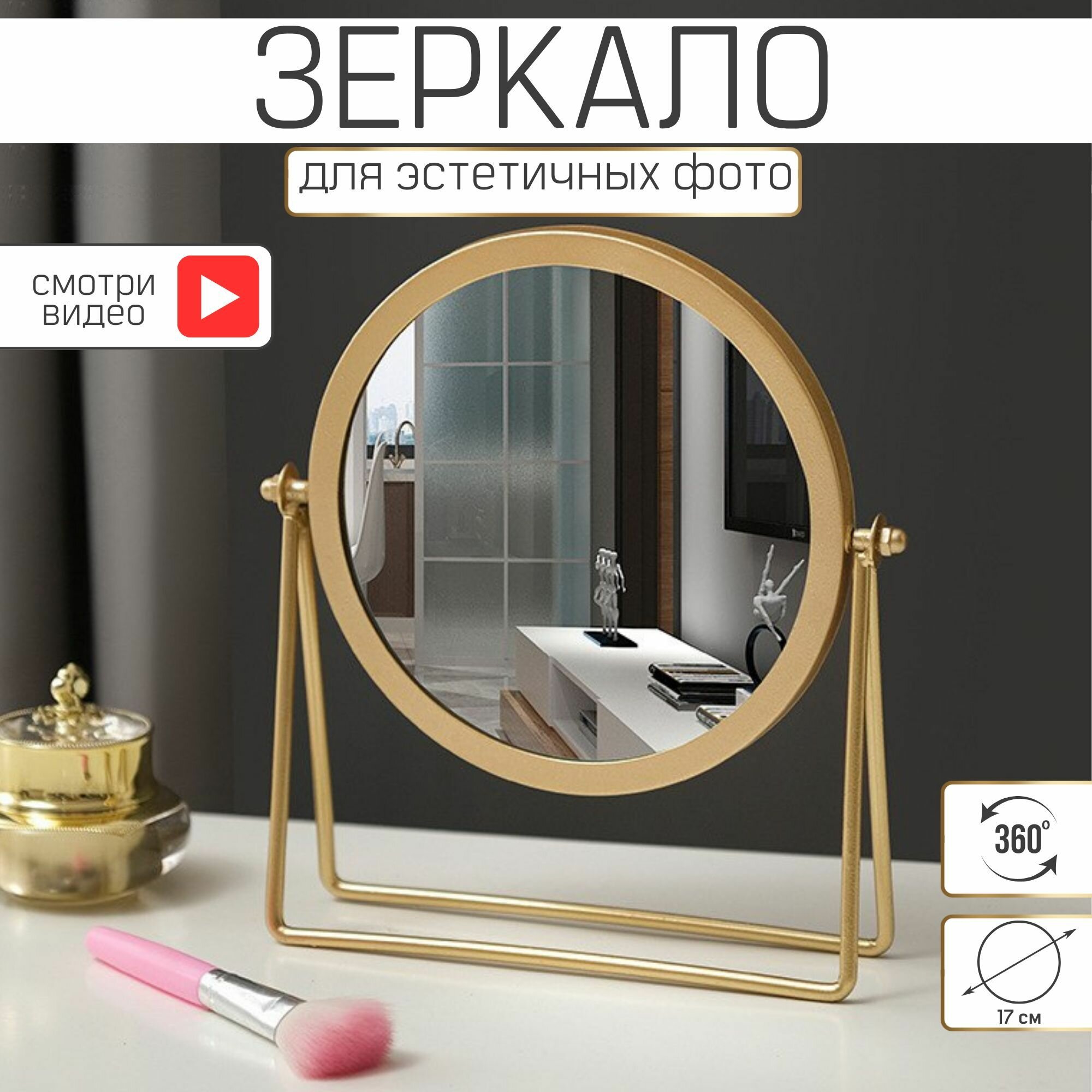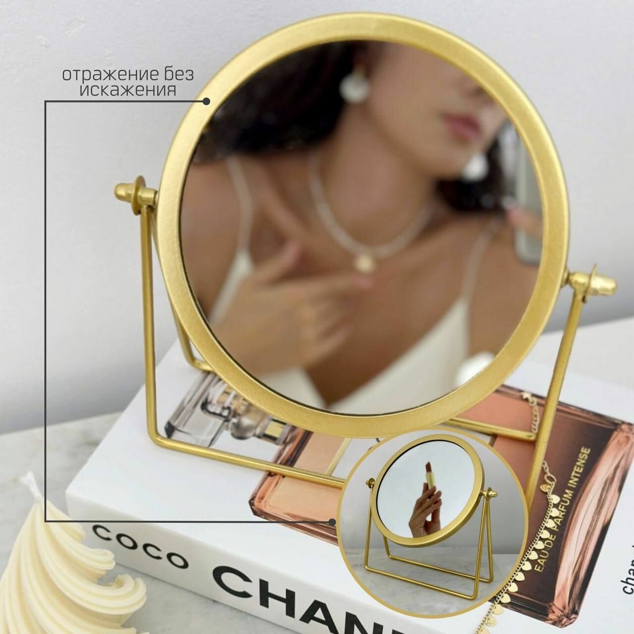 Зеркало настольное для макияжа круглое косметическое 21,5х18,5 см интересное: