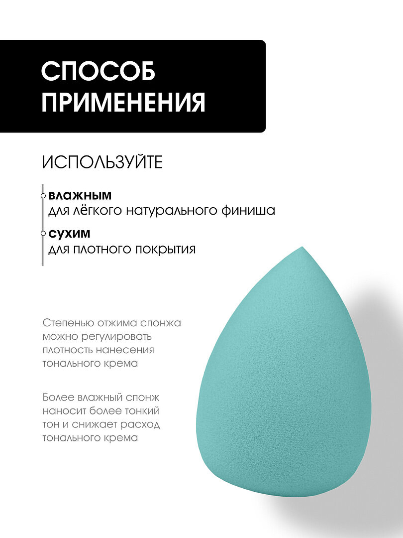 | Форма спонжа | грушевидный / яйцо |