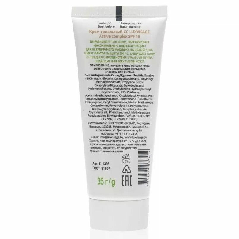 Купить LUXVISAGE Тональный крем CC ACTIVE COMPLEX SPF 10 Тон 10 FAIR, 30 мл