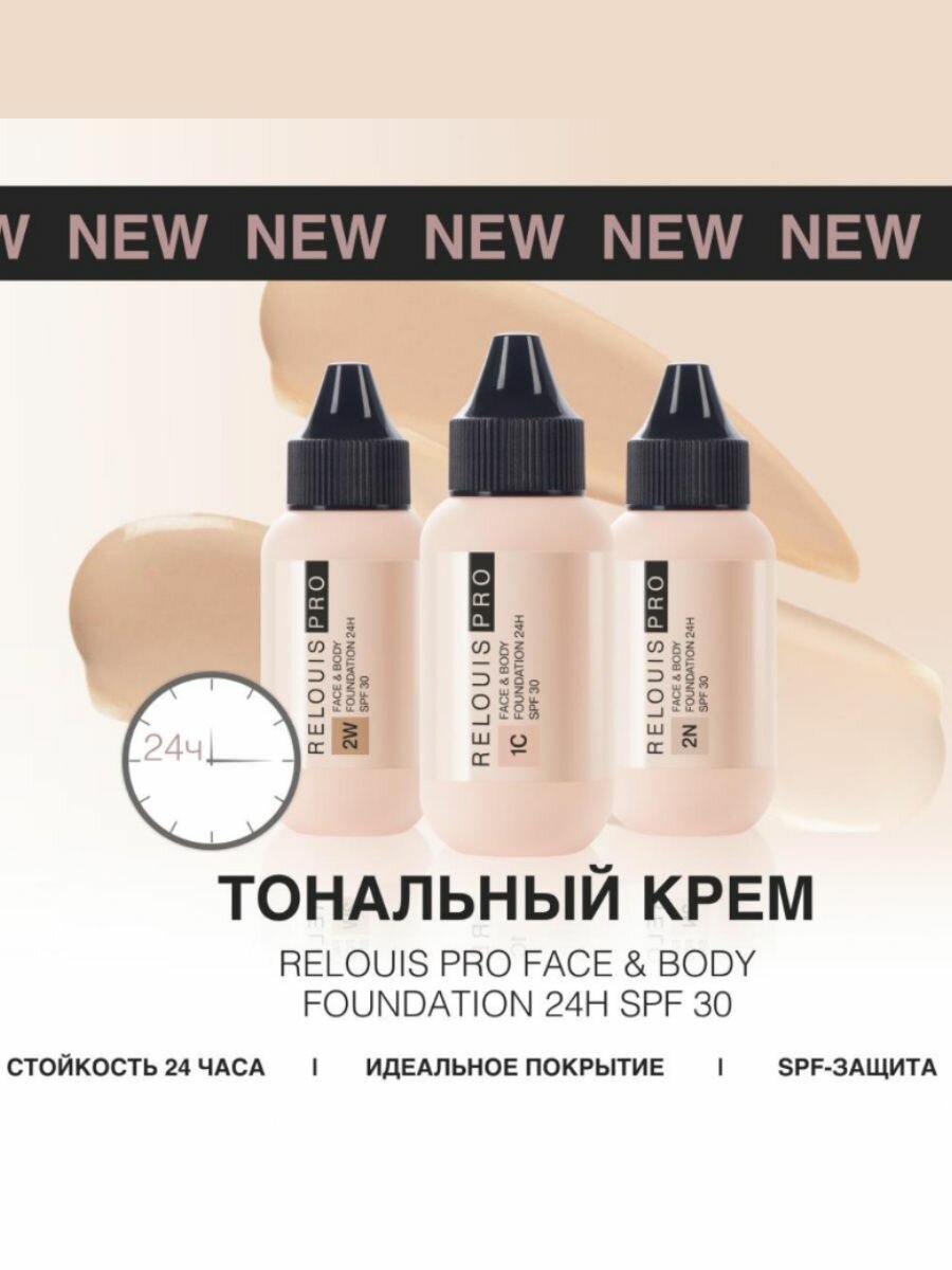 СохранитьТональный крем RELOUIS "PRO Face&Body Foundation 24H" SPF30 тон: 2N средний нейтральный интересное: