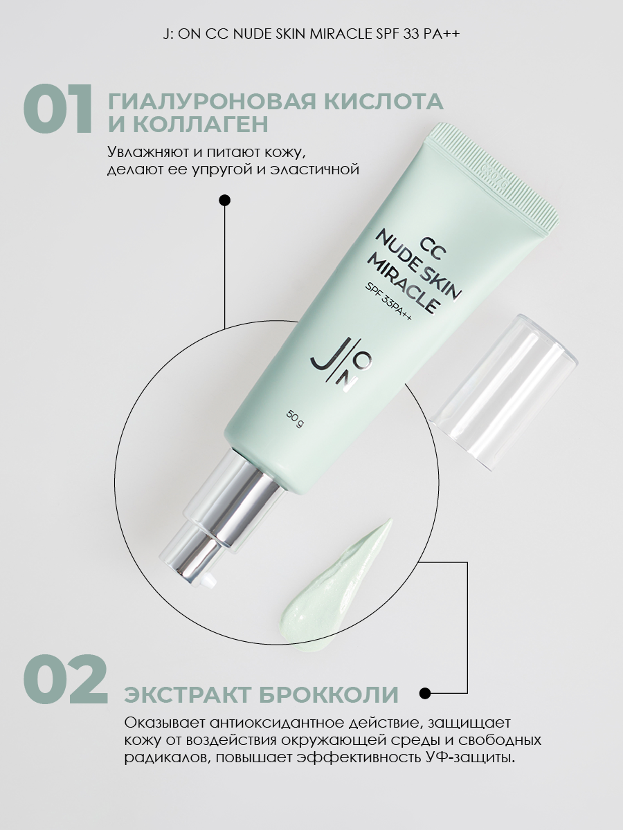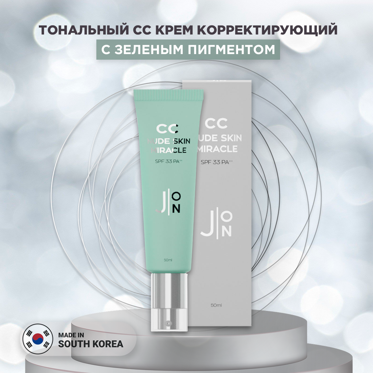 J:ON корректирующий СС крем для лица, праймер, против пигментации, себорегулирующий, солнцезащитный, подстраивается под цветотип, универсальный CC NUDE SKIN MIRACLE SPF 33 PA++ 50 мл интересное: