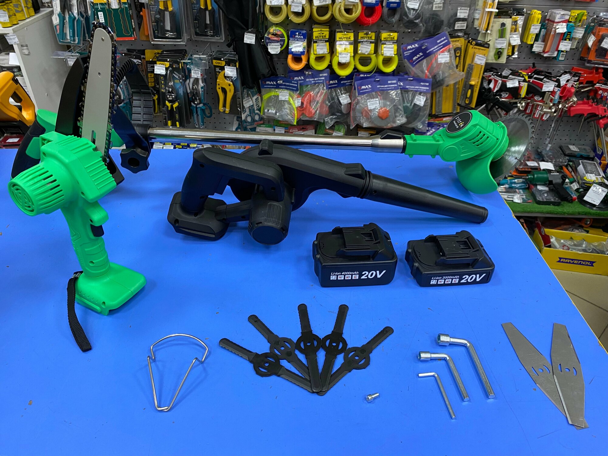 | Состав (подробно) | GreenCut 20* Триммер - 1 шт Режущий диск - 1 шт Пластиковые ножи - 5 шт Металлический нож - 1 шт Защитный кожух - 1 шт Металлическая скоба - 1 шт Дополнительная рукоятка - 1 шт Шестигранный ключ - 1 шт Ключ торцовочный - 1шт Винт - 1 шт АКБ - 1 шт *Поставляется в частично разобранном виде. ZKBL20* Воздуходувка - 1шт Насадка-труба - 1шт Мешок для сбора пыли - 1шт АКБ -1шт GreenSaw 20 Extra Power Пила - 1 шт Отвертка - 1 шт Ключ торцовочный - 1 шт Масленка - 1 шт Зарядное устройство - 1шт Руководство по эксплуатации - 3 шт |