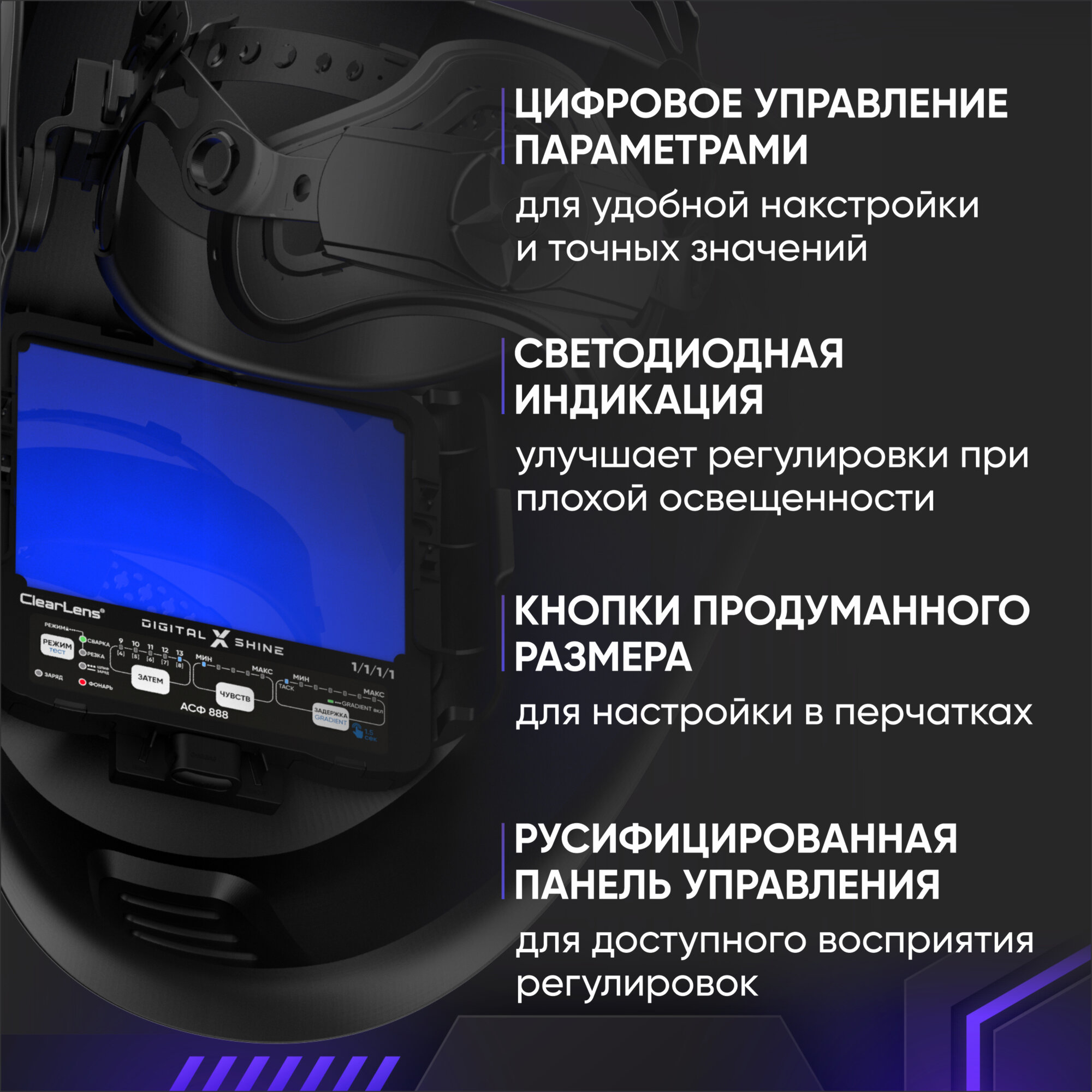 Маска сварщика Хамелеон START DIGITAL X SHINE 51ST05X интересное: