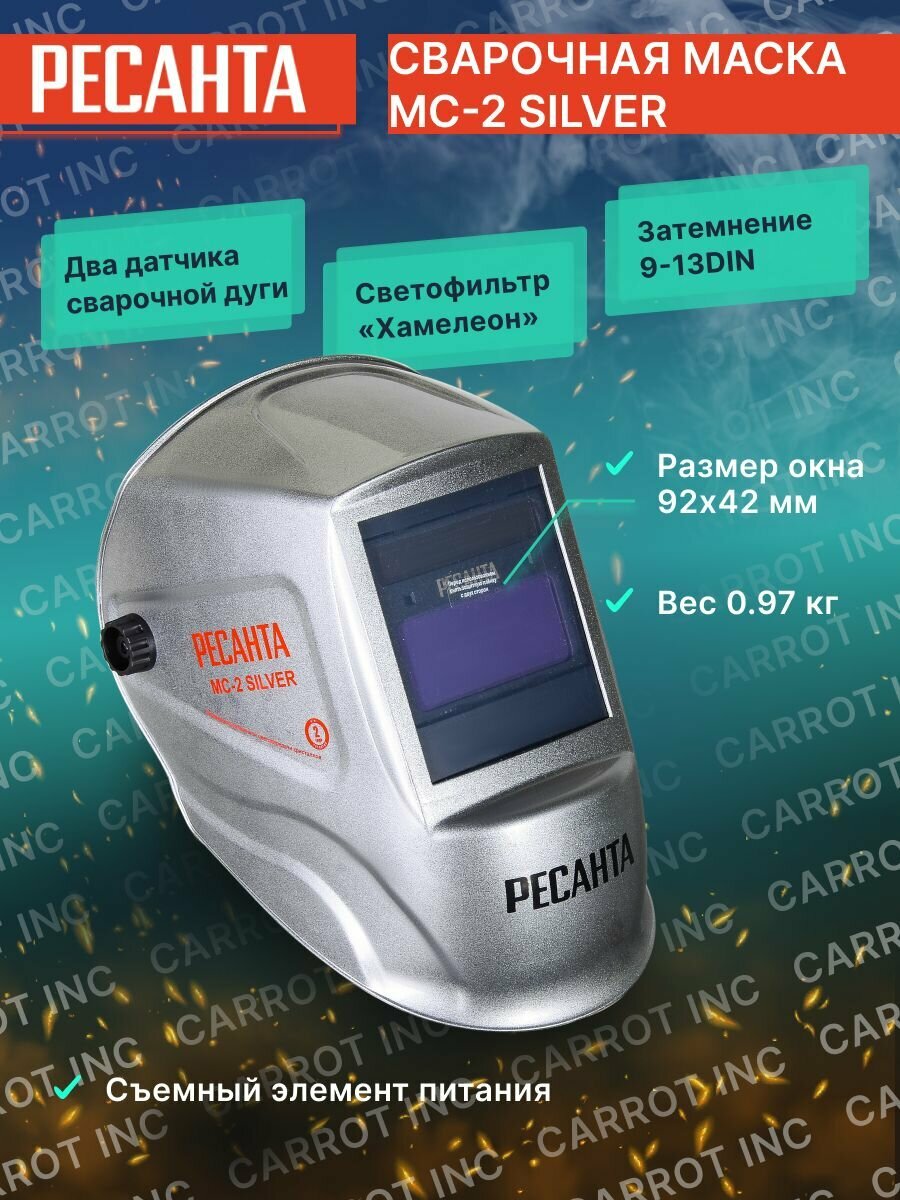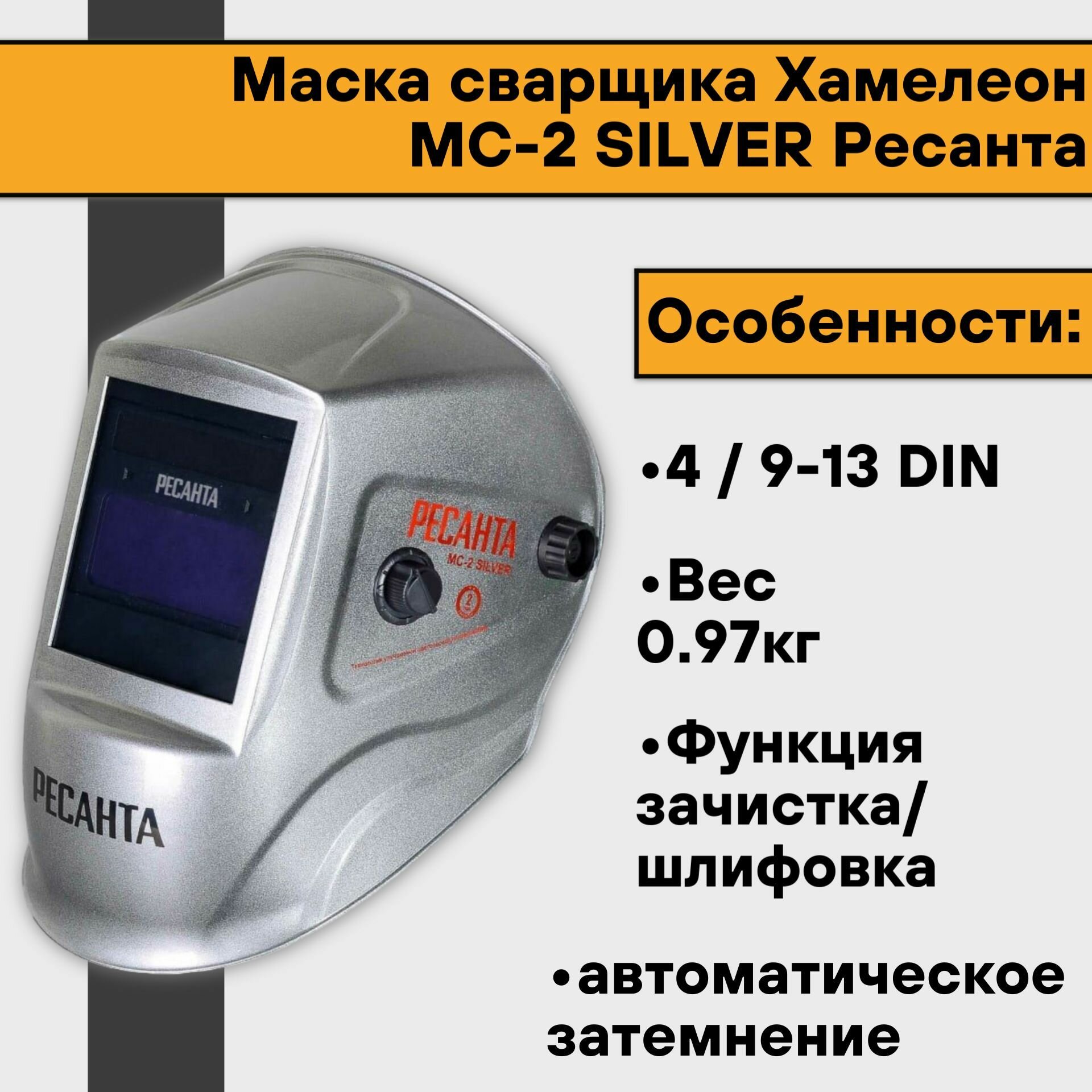 Сварочная маска МС-2 SILVER Ресанта, хамелеон, 92х42мм