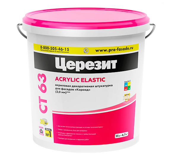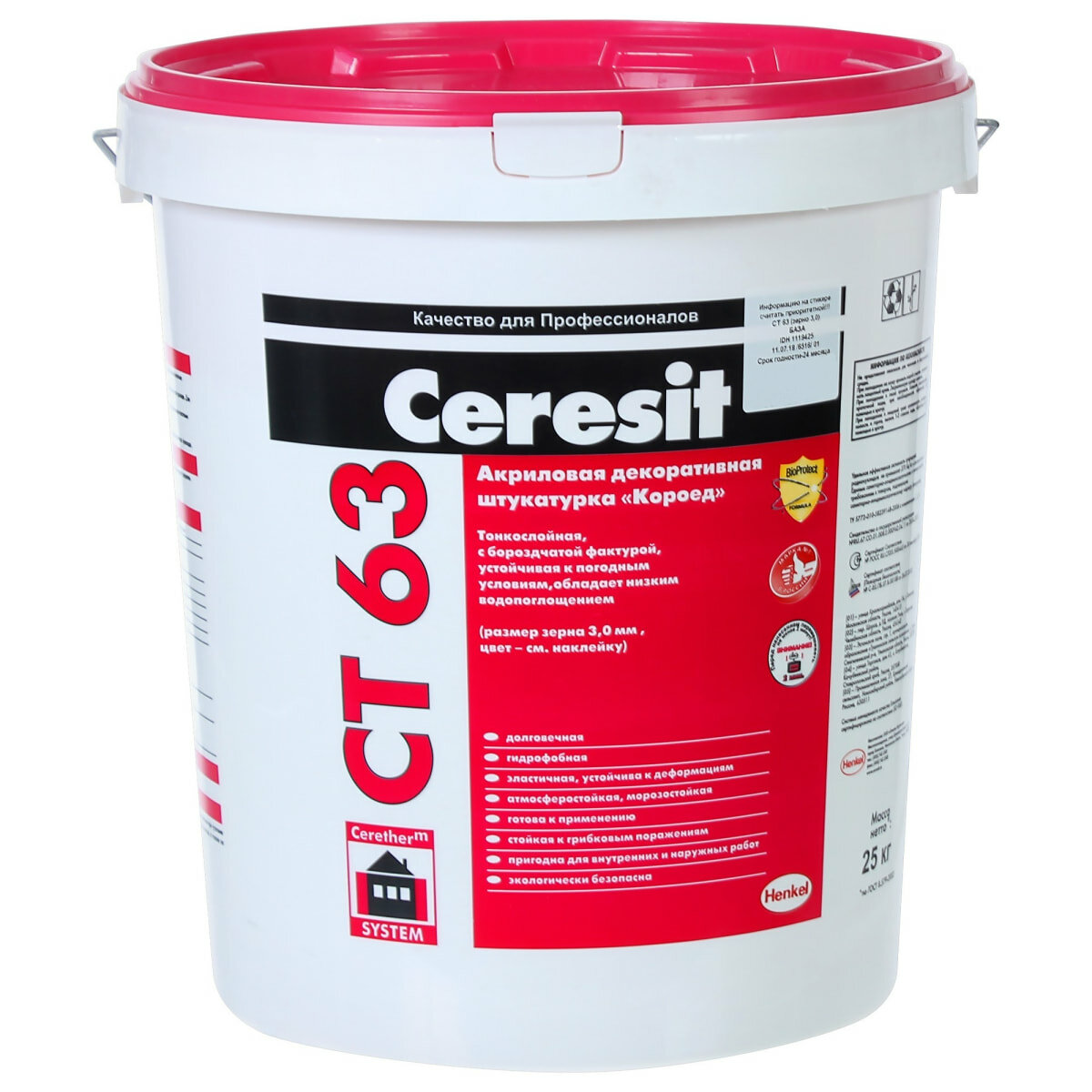 Штукатурка декоративная Церезит (Ceresit) CT 63, акриловая, короед, 3 мм, 25 кг