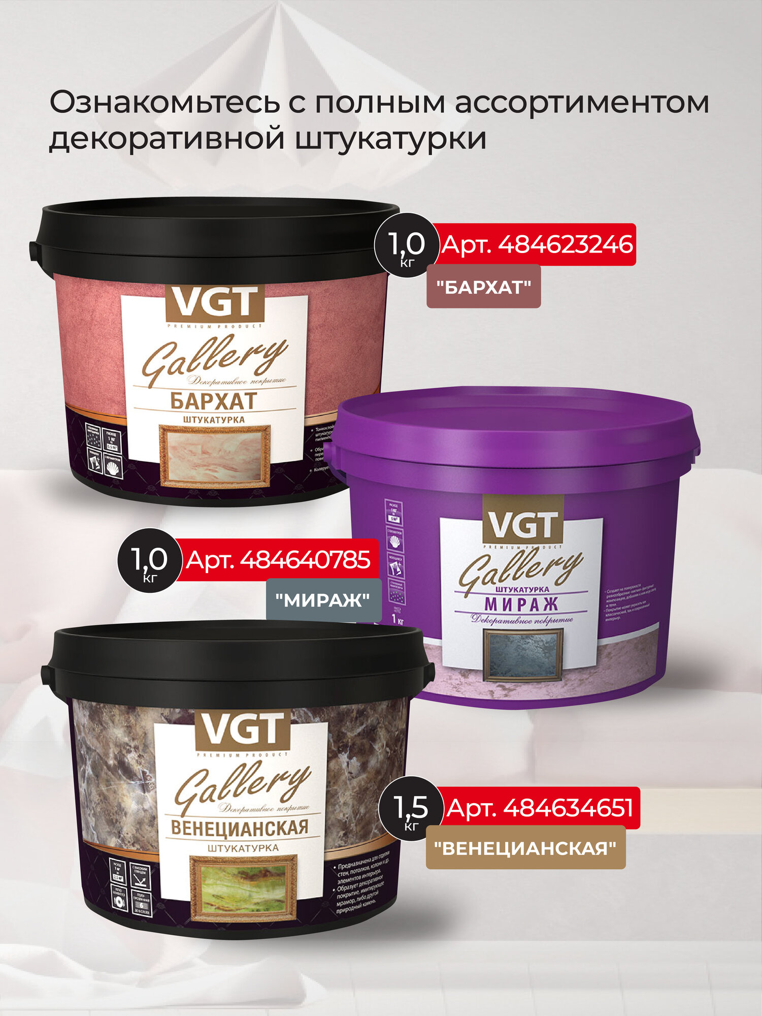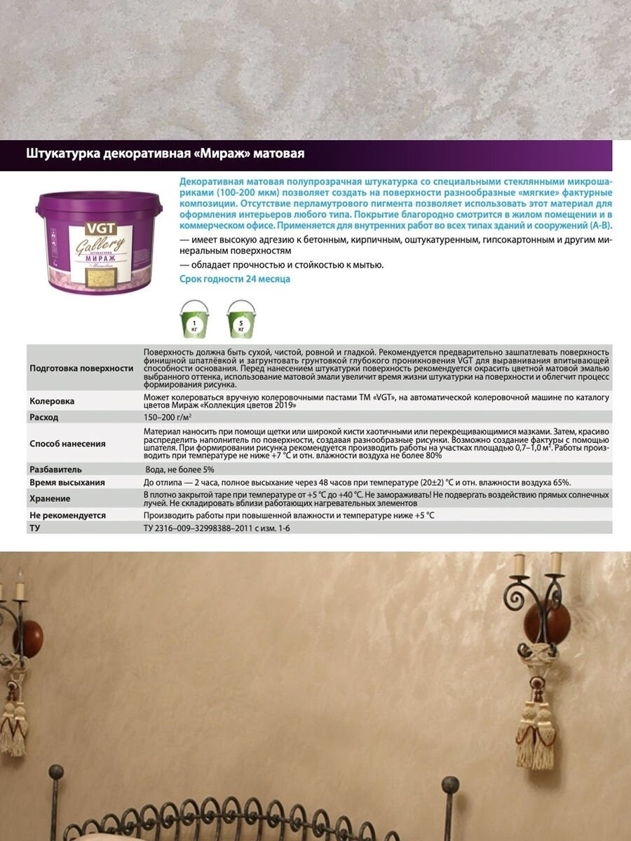 Штукатурка декоративная VGT Gallery мираж матовая (1кг) интересное: