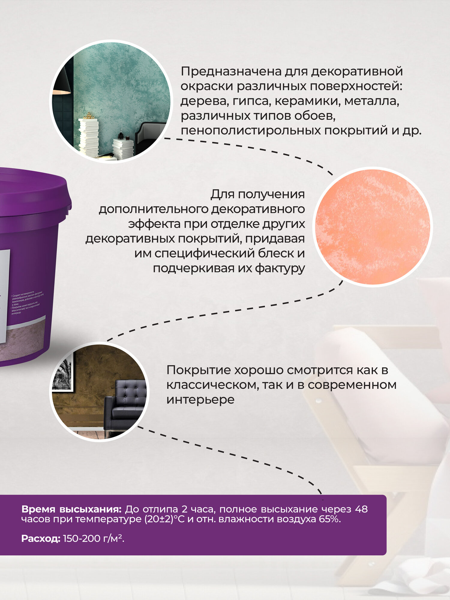 | Материал покрытия | декоративная шпаклевка / декоративная штукатурка |