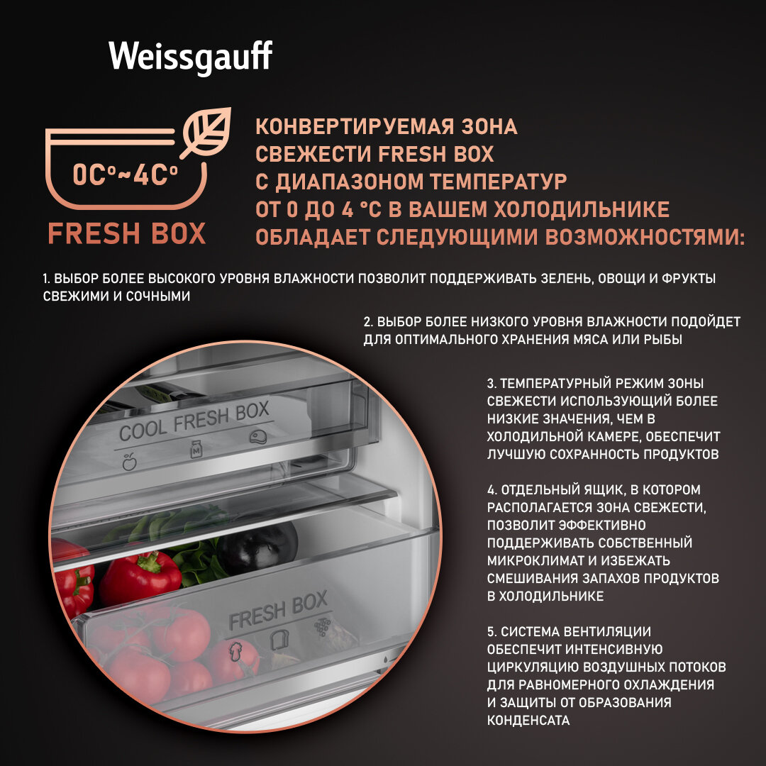 Холодильник Weissgauff WRK 195 D Full NoFrost Rock Glass двухкамерный ширина 60 см, LED освещение