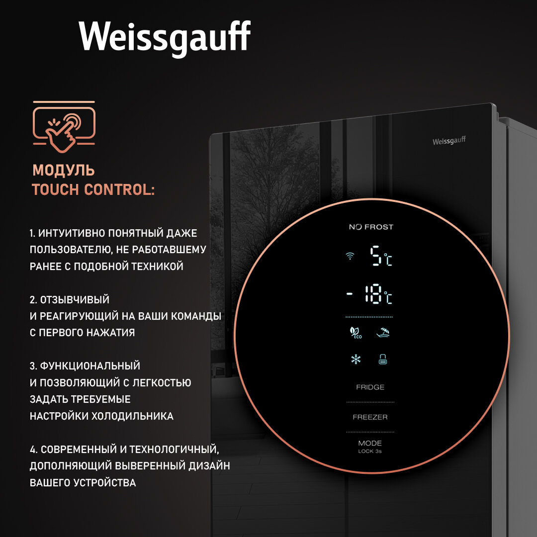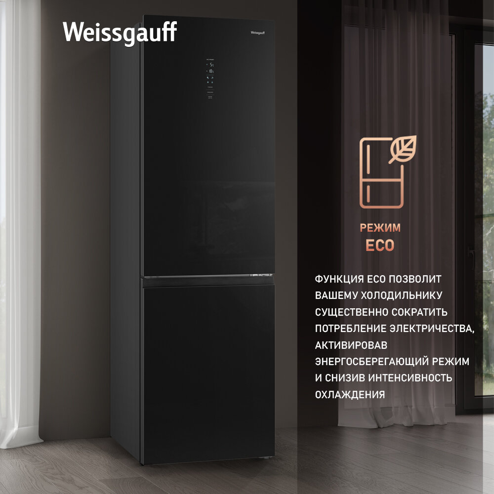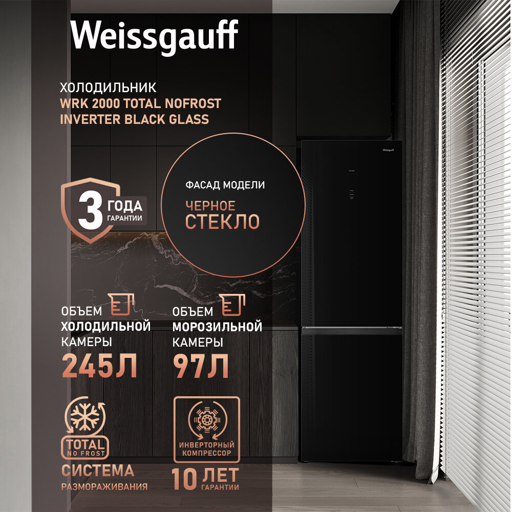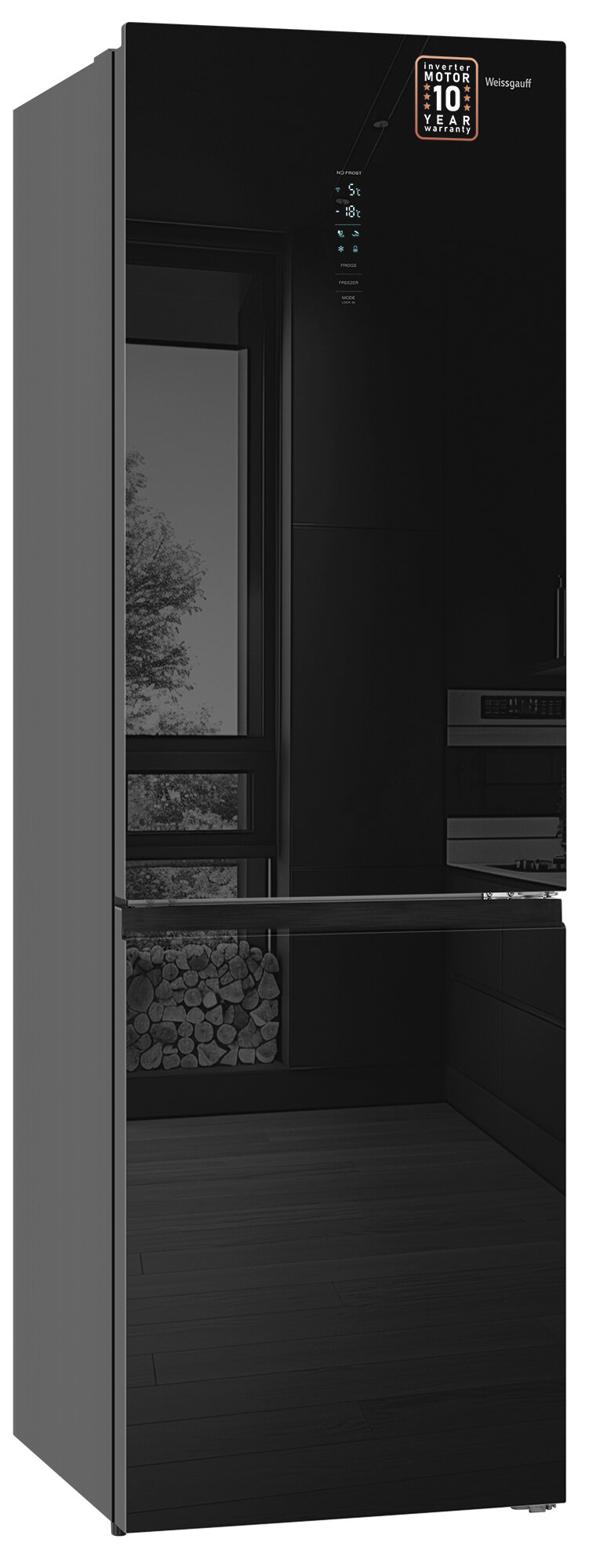 Купить Отдельностоящий холодильник с инвертором Weissgauff WRK 2000 Total NoFrost Inverter Black Glass двухкамерный ,60 см