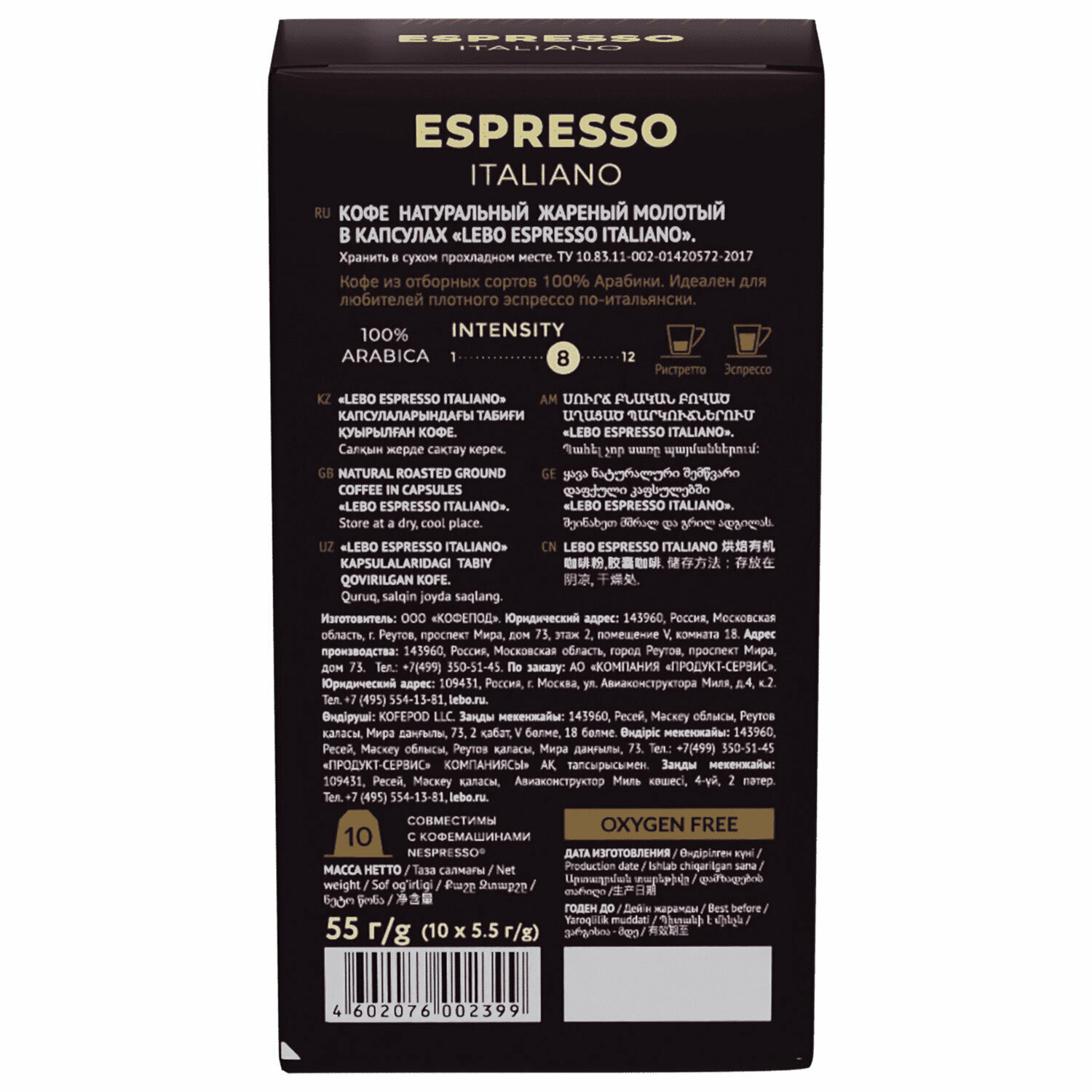 Кофе в капсулах LEBO ESPRESSO Nespresso ITALIANO 55 г (10 шт)