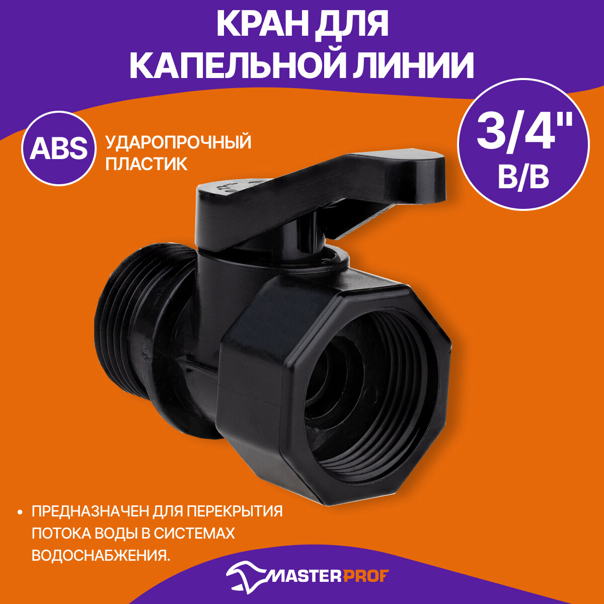 Кран 3/4 для капельного полива MasterProf пластиковый (ДС.071483)