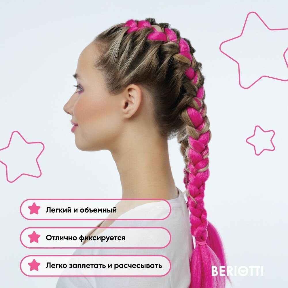 Коса цветная BERIOTTI, длина 60см, нейлон, розовый