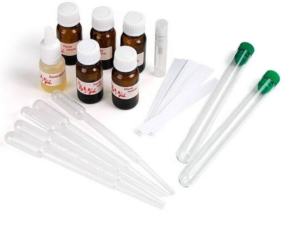 | Состав набора | парфюмерное масло лимона, парфюмерное масло мяты, парфюмерное масло сосны, парфюмерное масло иланг-иланга, парфюмерное масло пачули, флакон спрей, основа для духов, 5 пипеток, 2 пробирки, блоттеры, инструкция |