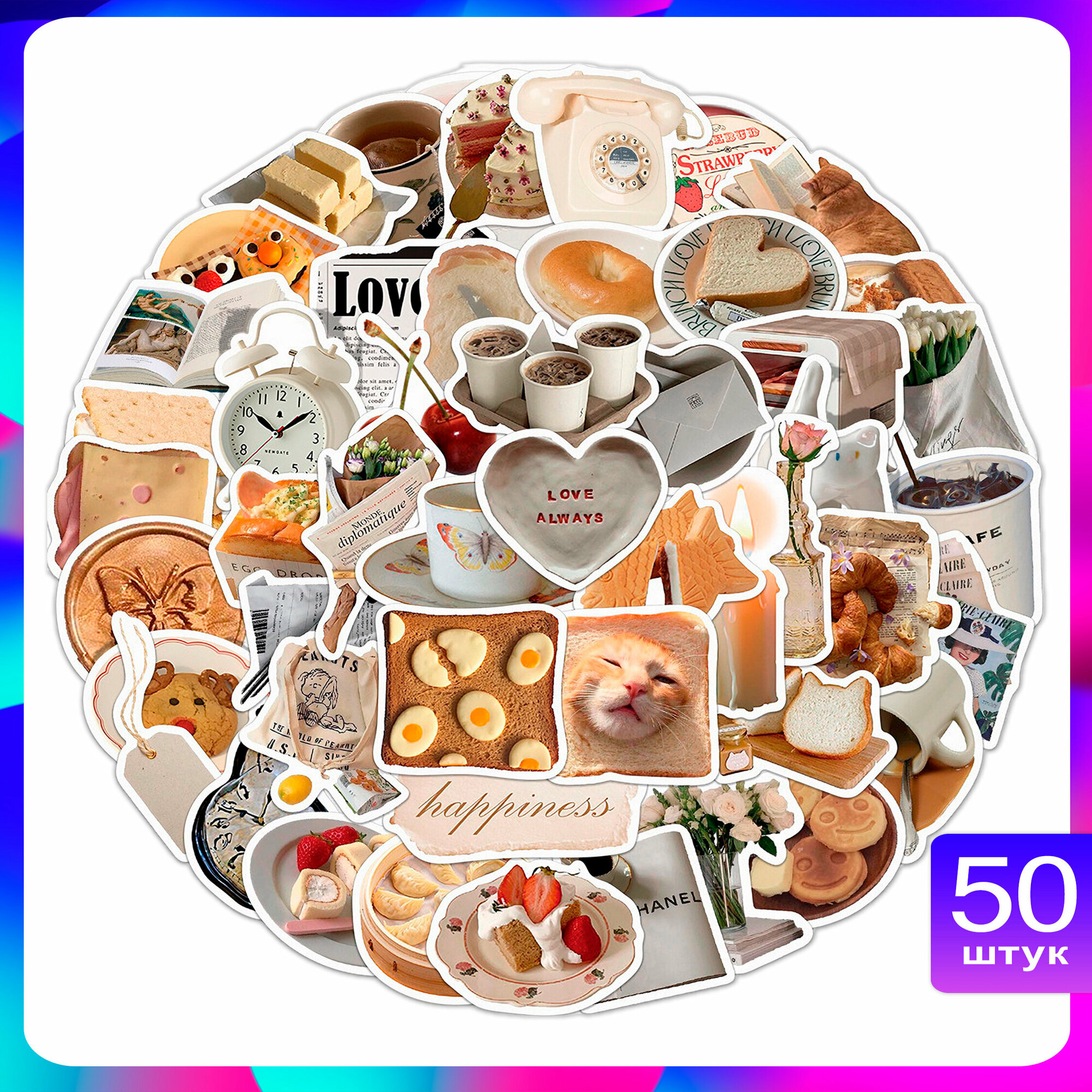 Наклейки-стикеры "Винтажное искусство" 50 штук. Наклейки виниловые на ноутбук, телефон. Милый стикерпак в стиле ретро для скрапбукинг и творчества, бомбинга