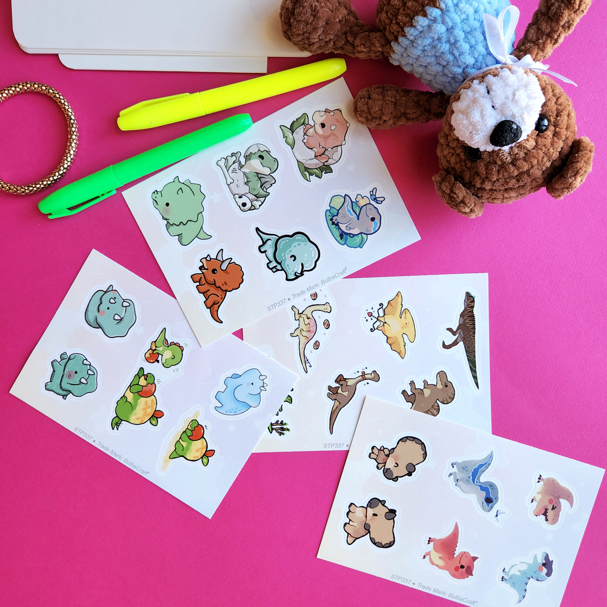 Наклейки для детей "Kawaii Динозавры #3", 53 шт., 9 листов А6. Стикеры на телефон, ноутбук, чехол, аниме, на стену. Набор для творчества и декора, BulbaCraft