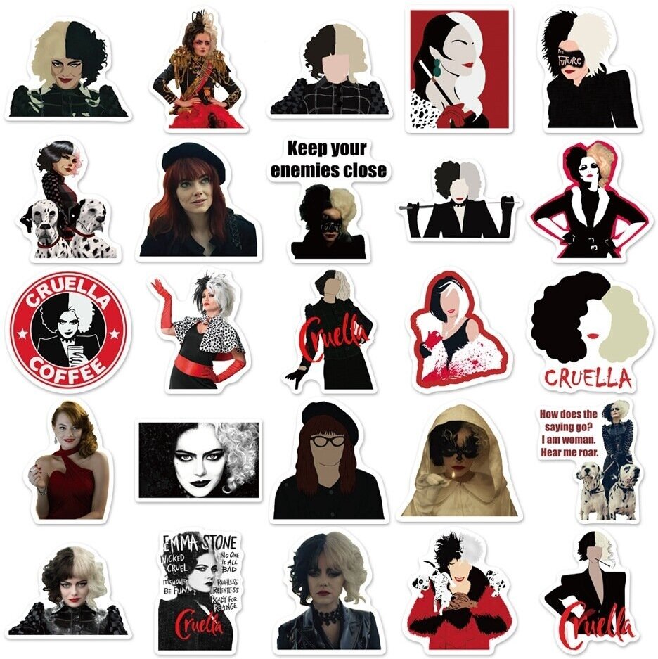 Купить Набор наклеек Круэлла 50 шт, стикеры самоклеящиеся