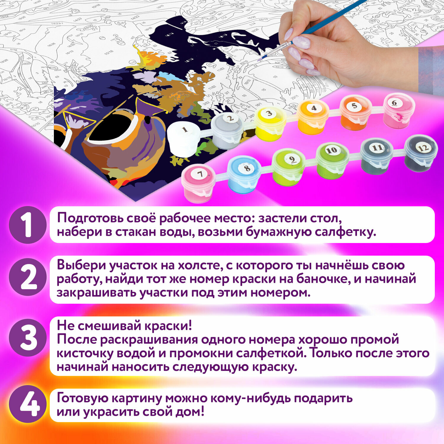 | Особенности | быстросохнущие краски / кисти в комплекте / краски в комплекте / с цифрами / со смешиванием красок |
