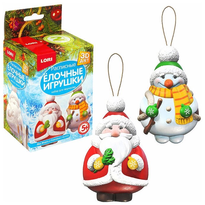 Набор д/творчества LORI Роспись ёлочных игрушек Дед Мороз и Снеговик 3D Art Ир-012