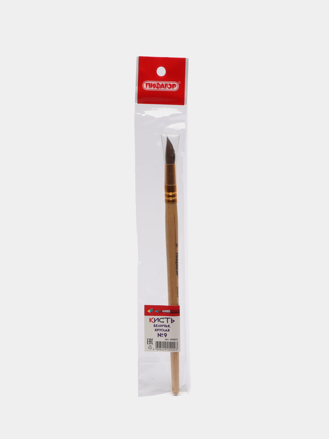 Кисть пифагор, белка, круглая, № 9, деревянная лакированная ручка, с колпачком, пакет с подвесом, 200823 интересное: