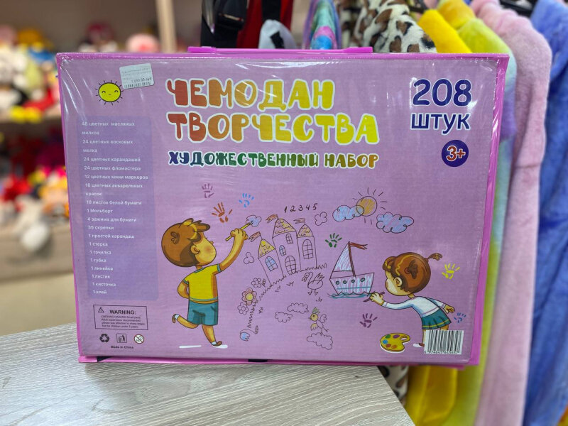 | Состав набора | бумага / карандаши / кисточка / краска / ластик / линейка / маркер / мелки / мольберт / точилка / фломастеры |