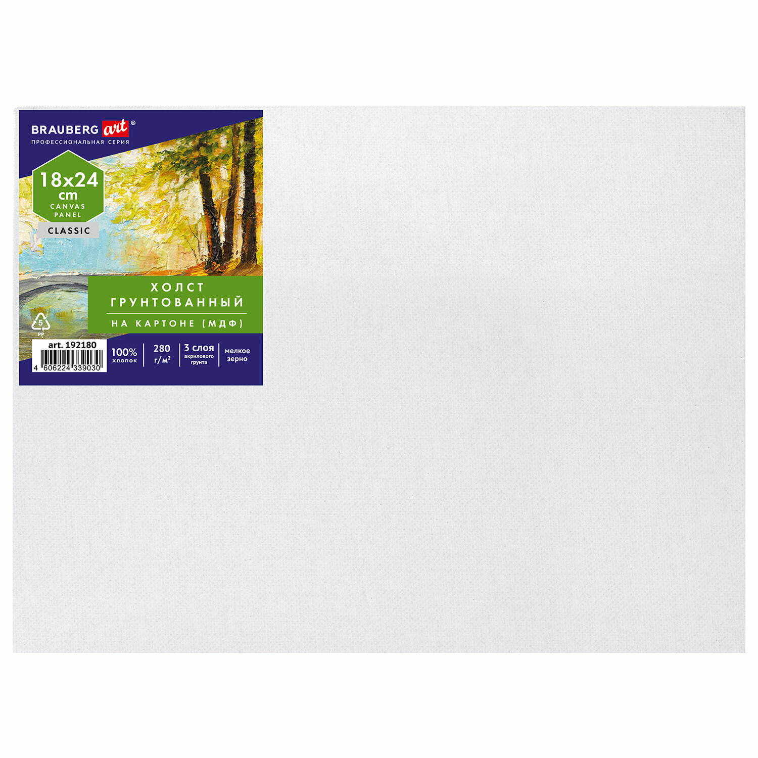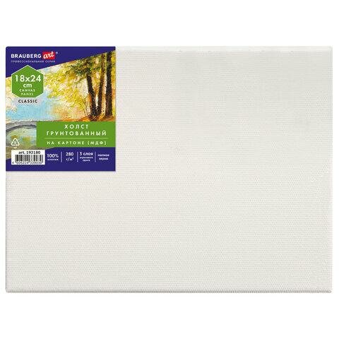 Холст / на картоне для рисования (МДФ), 18х24 см, 280 г/м2, грунтованный, 100% хлопок, Brauberg Art Classic