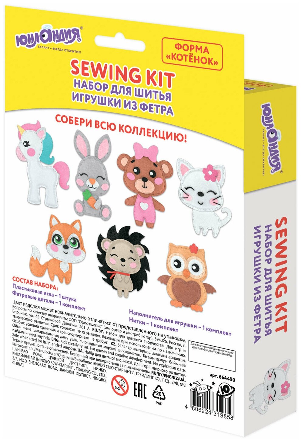 Набор для шитья Юнландия игрушки из фетра "Котёнок", , 664490 интересное: