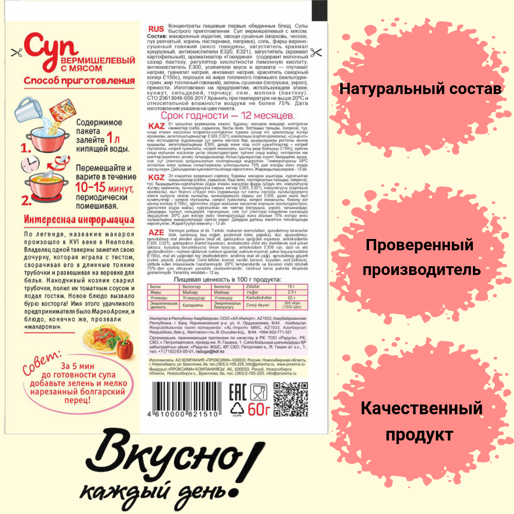 Суп быстрого приготовления Вермишелевый с мясом "Приправыч" 60гр. 1 шт. 3 порции интересное: