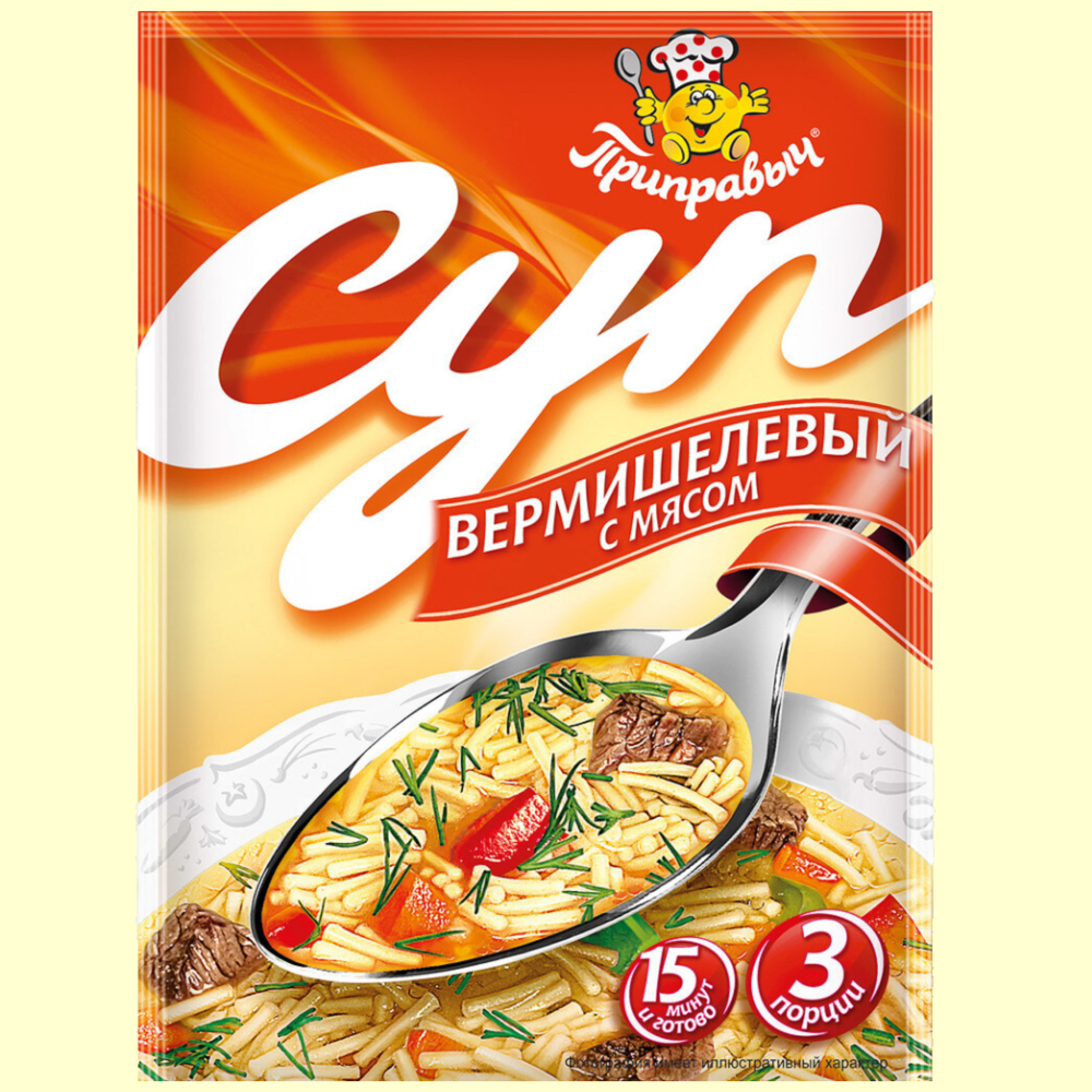 Суп быстрого приготовления Вермишелевый с мясом "Приправыч" 60гр. 1 шт. 3 порции