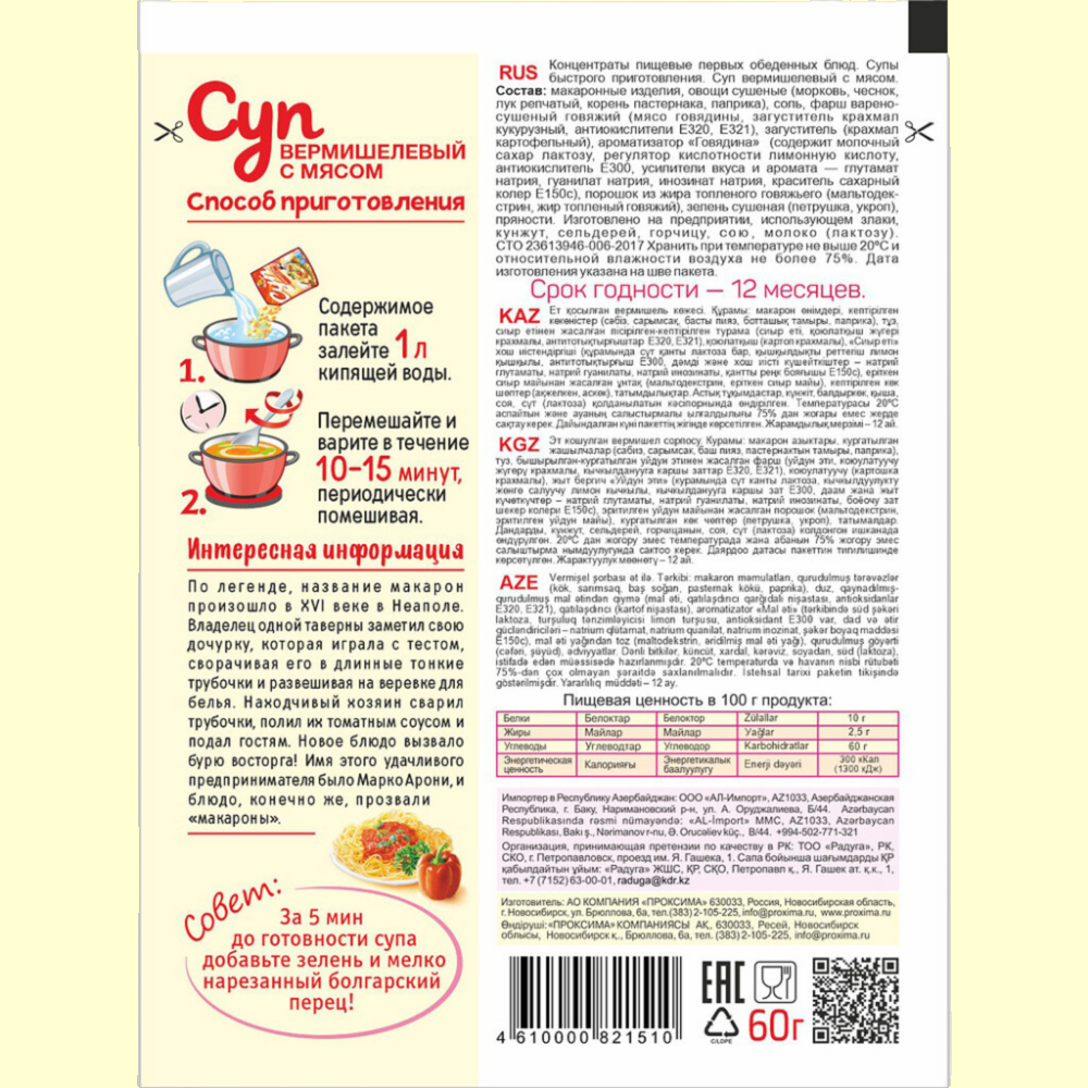 Суп быстрого приготовления Вермишелевый с мясом "Приправыч" 60 гр. 20 шт. 60 порций интересное: