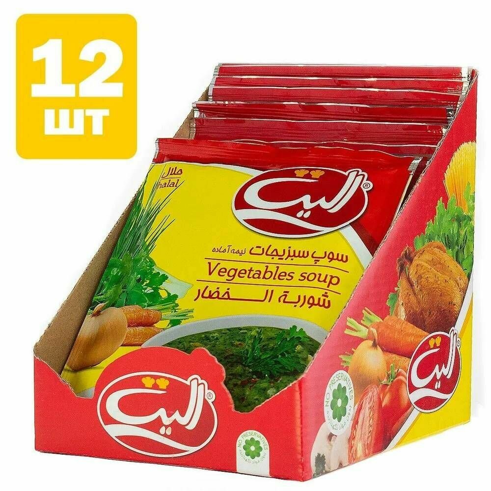 Овощной суп быстрого приготовления Elite, Иран, халяль, набор 12 шт. по 65 гр, вес 780 гр, основа для супов, пост