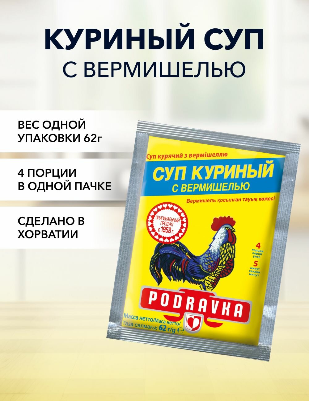 Ниже Вы можете прочитать отзывы на Суп куриный с вермишелью Podravka 62 г*1 шт, ознакомится с подробными характеристиками, посмотреть интересные обзоры и фотографии на Суп куриный с вермишелью Podravka 62 г*1 шт.
