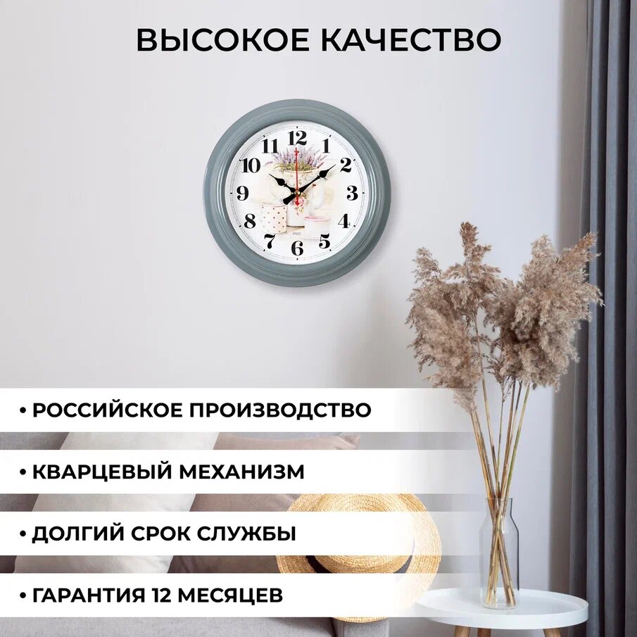 Часы настенные, серия: Интерьер, "Лаванда и чай", плавный ход, d-21 см 9902021 интересное: